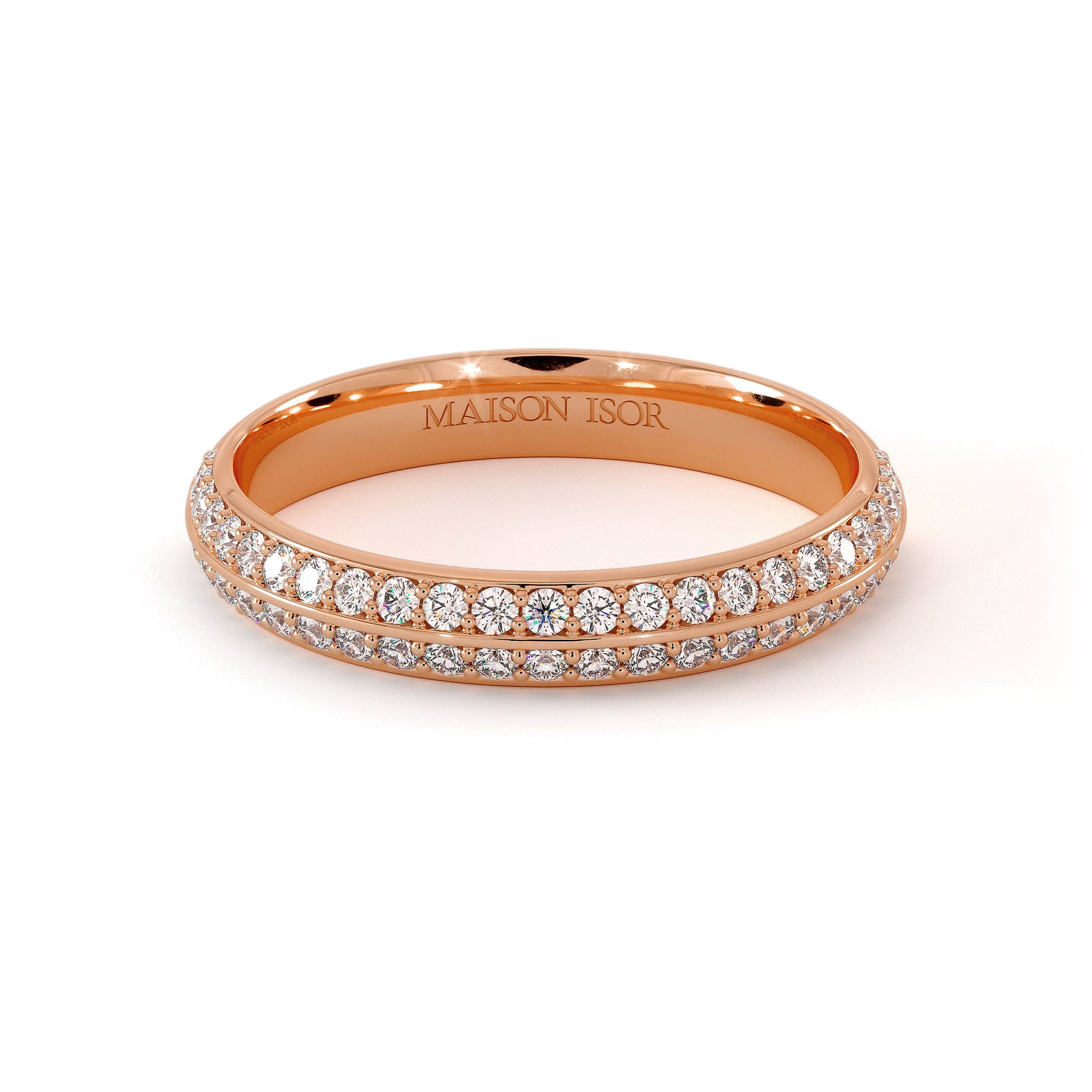 Alliance Aylin en or 750/1000, sertie de deux rangées de diamants taille brillant. Une silhouette élégante au raffinement intemporel. Poids diamant : 0,35 ct.