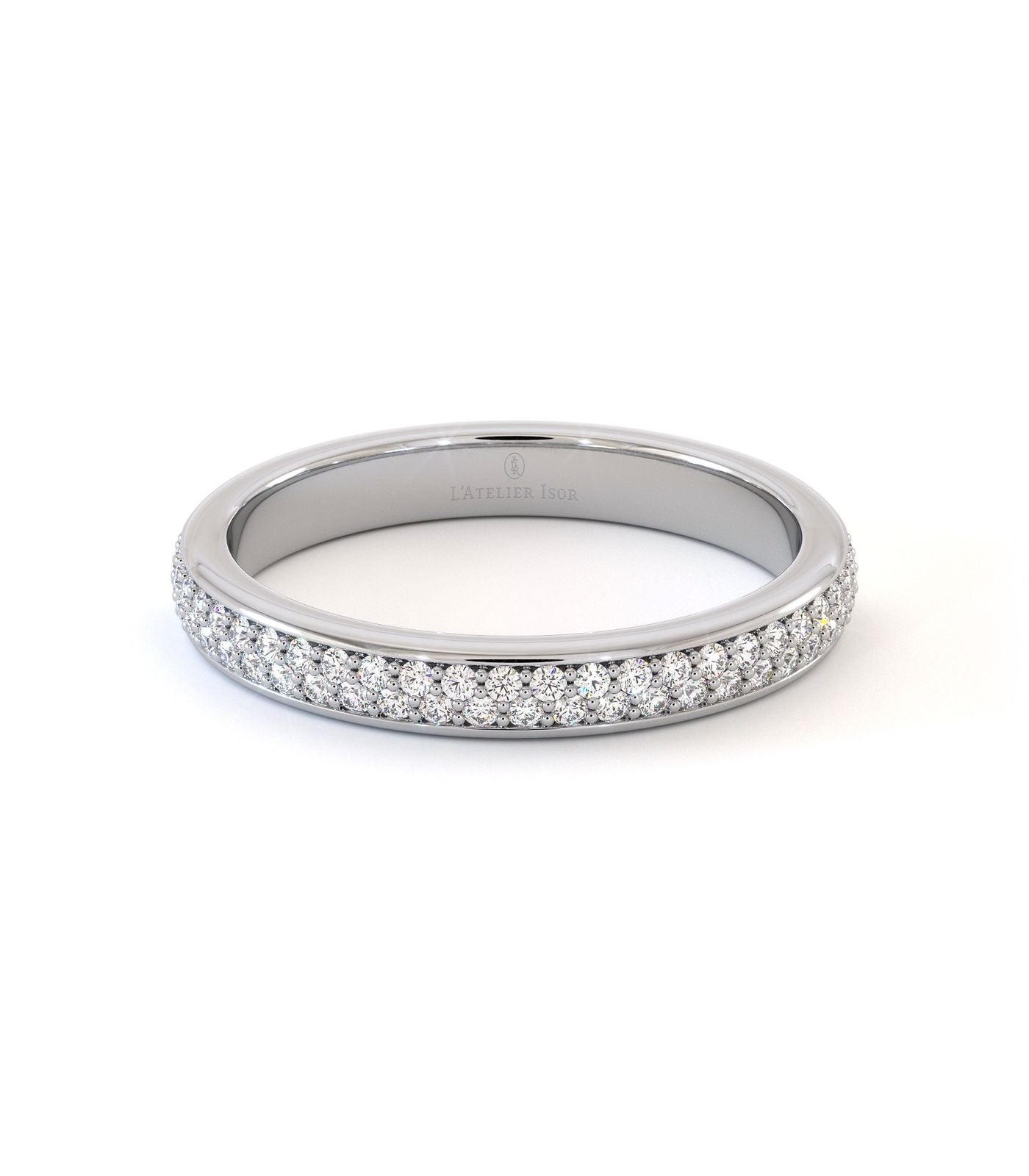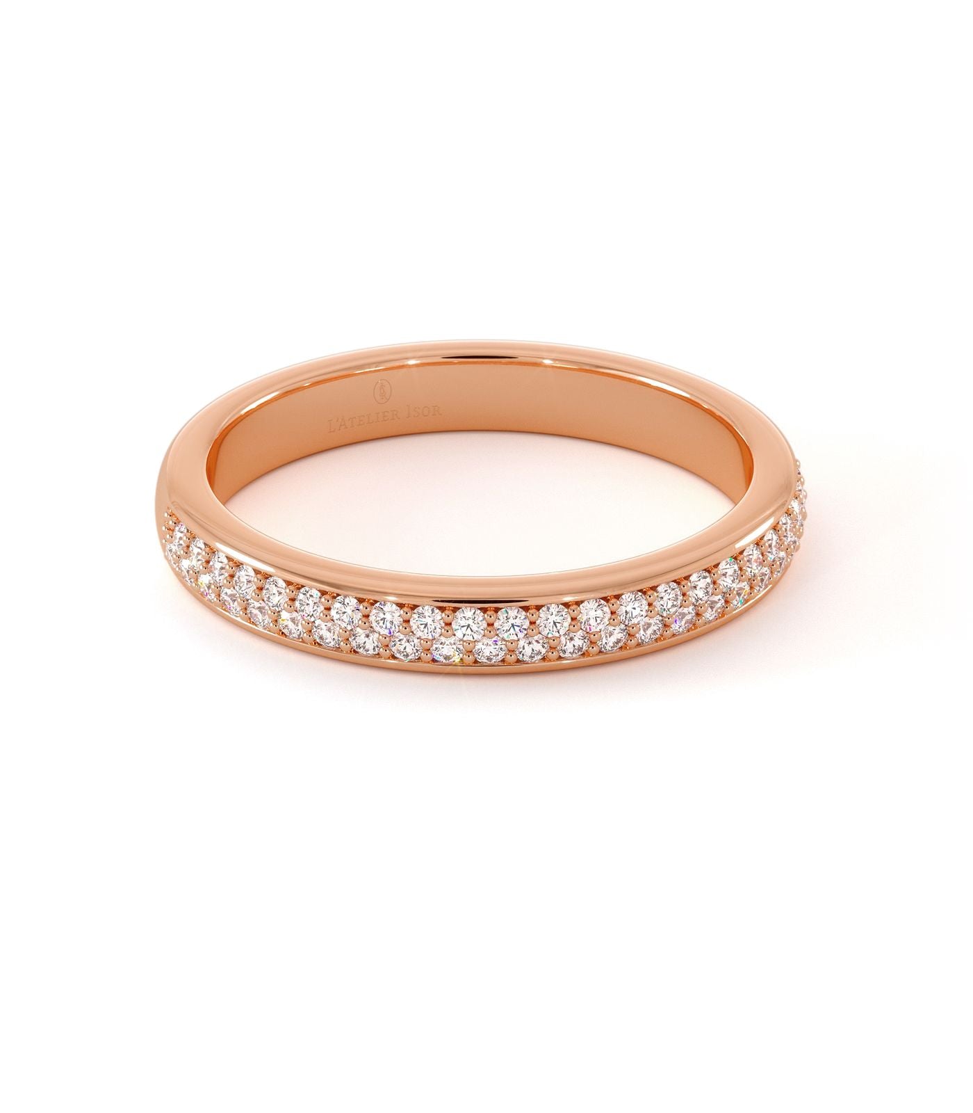 Alliance Joy en or 750/1000, pavée de deux rangées de diamants taille brillant. Un éclat raffiné pour sublimer chaque geste. Poids total diamant : 0,25 ct.