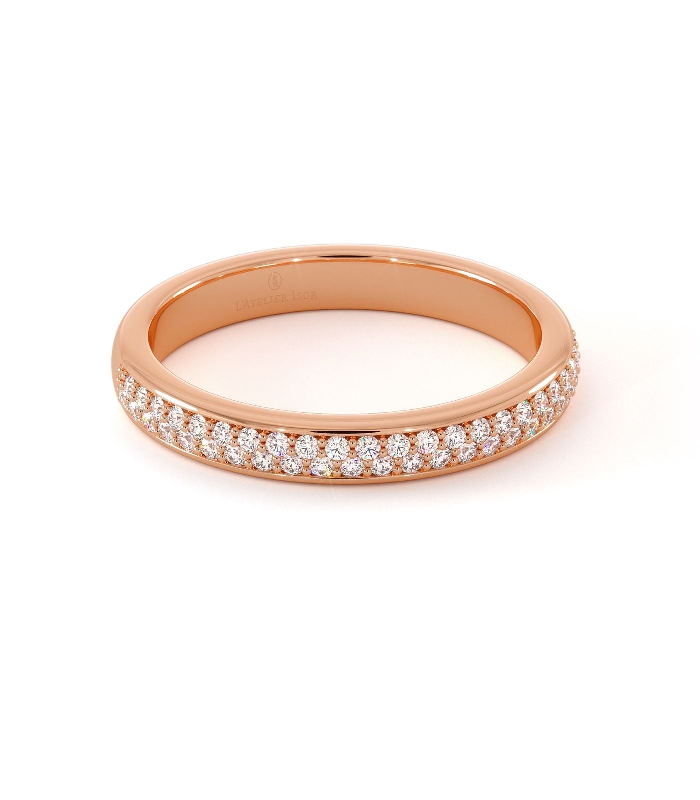 Radieuse, l’alliance JOY et son double filet de petits diamants brillants de 0,25 carats poids total parcourent l’anneau avec soin. Un pavage minutieux qui offre un effet brillant tout en accentuant la pureté de l’or. Tous les bijoux Maison Isor alliant l’or et le diamant existent en or jaune, en or blanc et en or rose. L’alliance JOY épouse parfaitement le solitaire SALSA, une bague de mariage aux multiples facettes de lumières. Pour un duo Alliance solitaire encore plus parfait, optez pour une alliance unique créée sur-mesure pour vous.