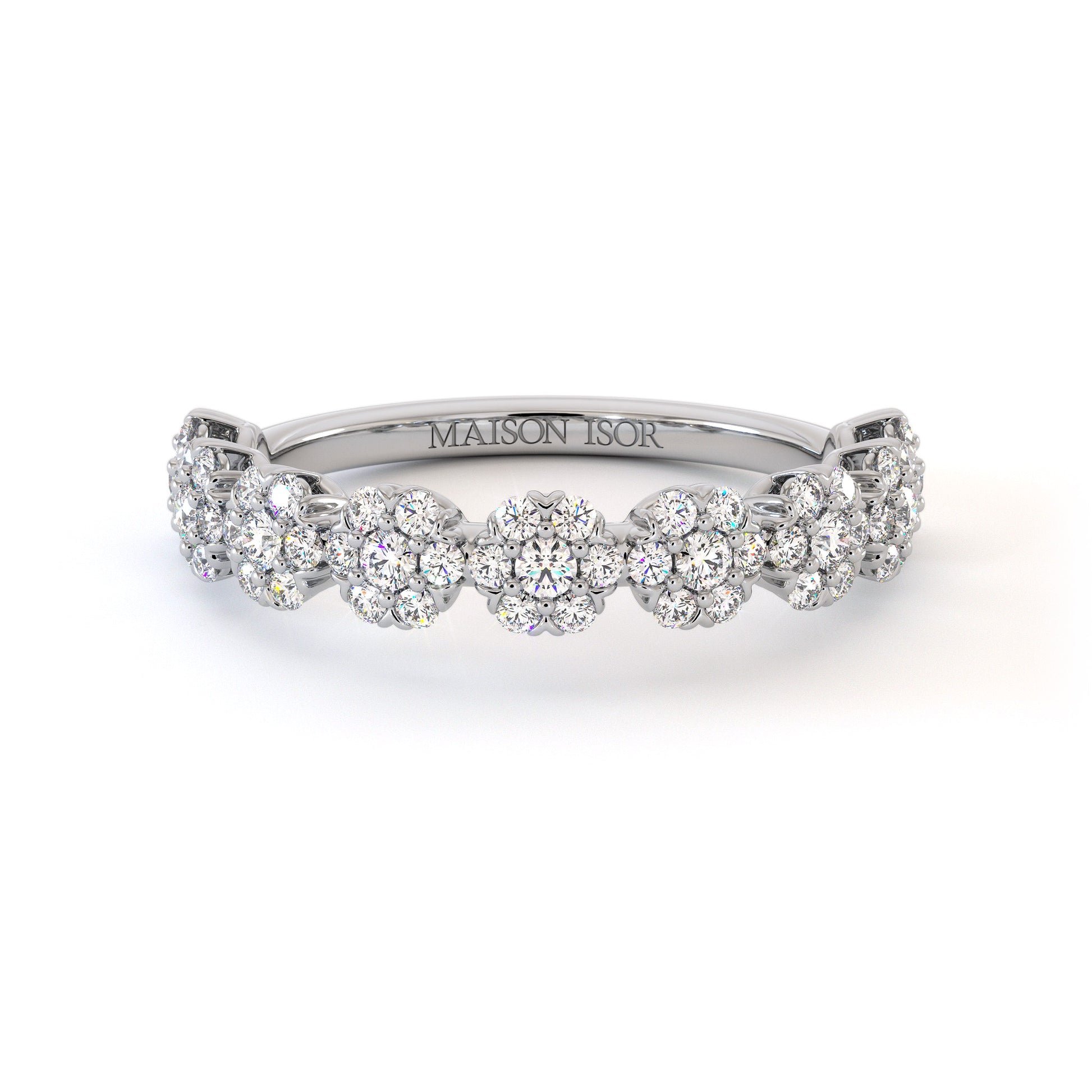 Alliance Lara en or 750/1000, sertie de diamants taille brillant en pavage et serti griffe. Un design audacieux et asymétrique, pour une allure à la fois moderne et raffinée. Poids total diamant : 0,53 ct.