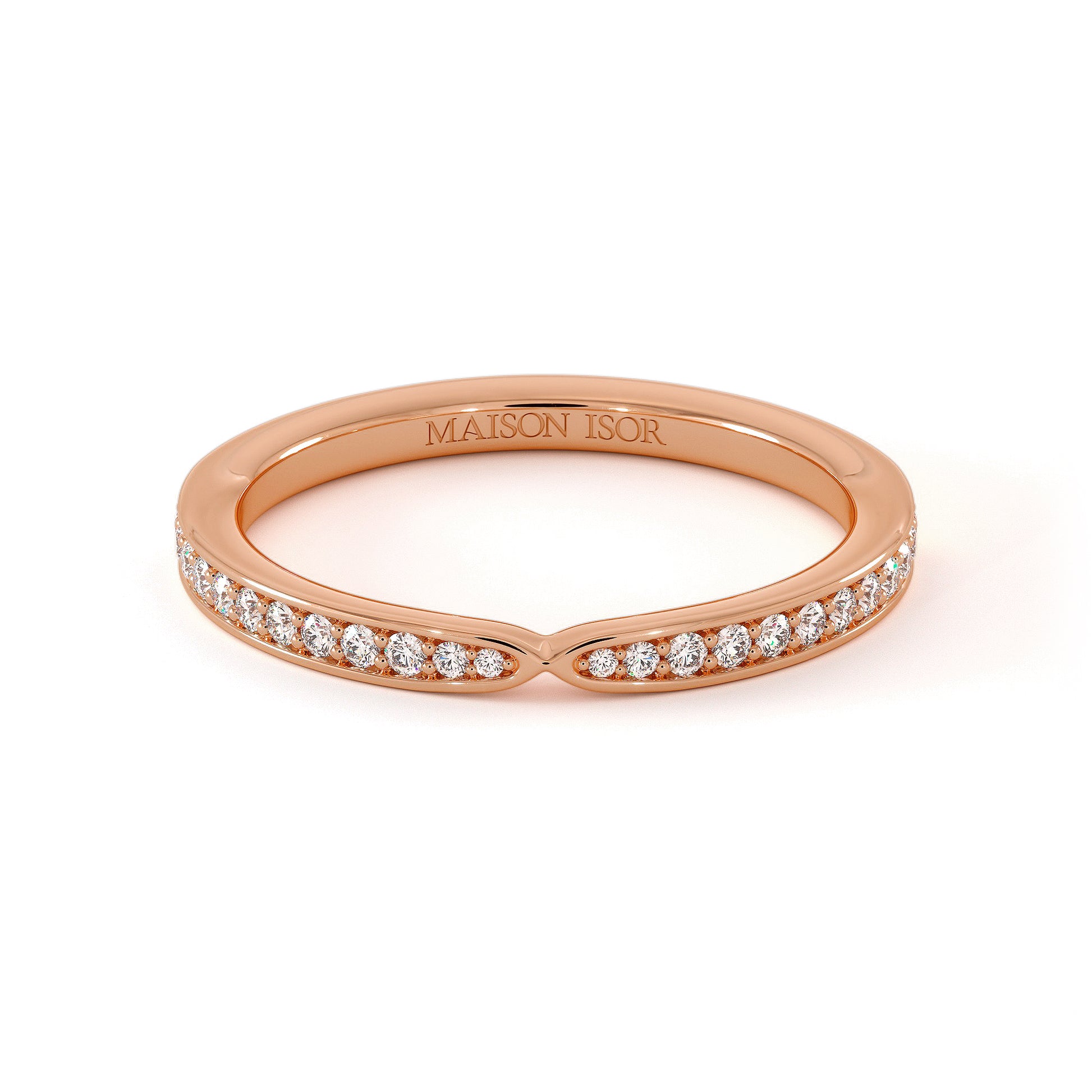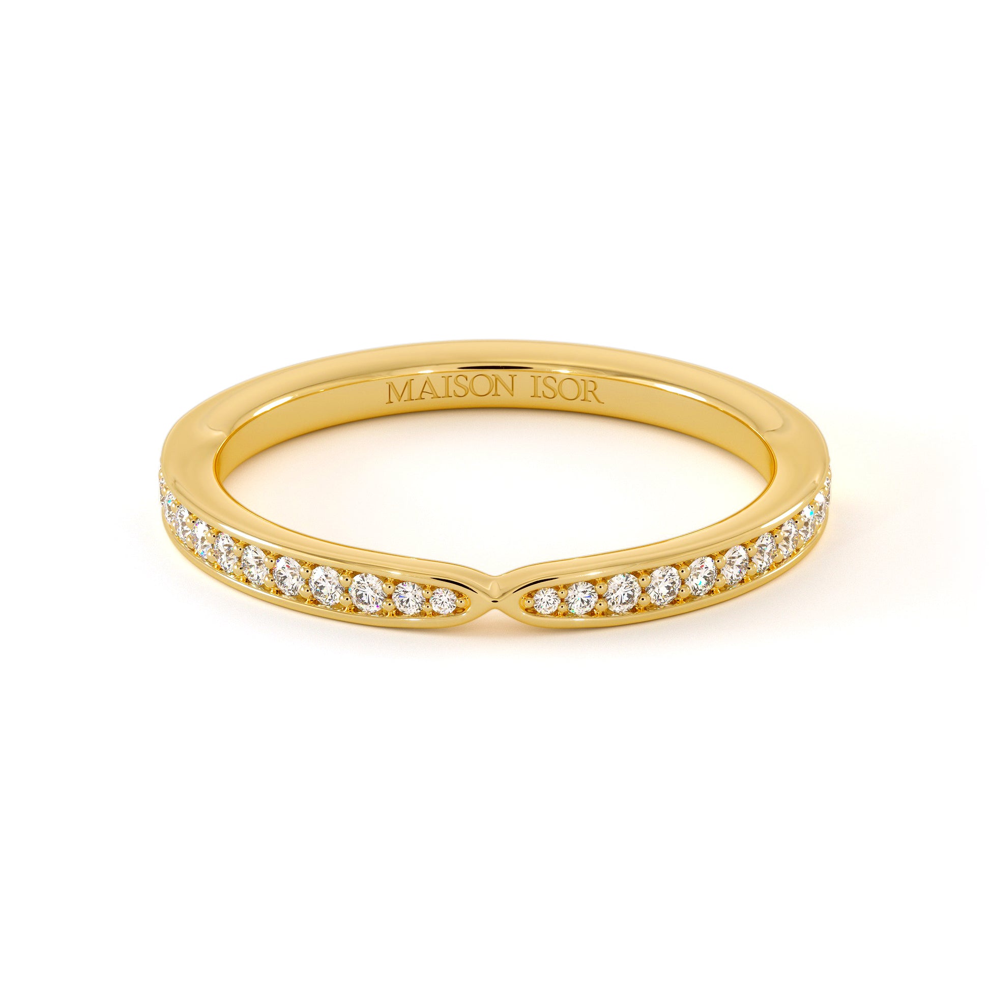 Alliance Nia en or 750/1000, sertie de diamants taille brillant parfaitement alignés. Un design épuré et intemporel pour célébrer un lien unique. Poids diamant : 0,18 ct.