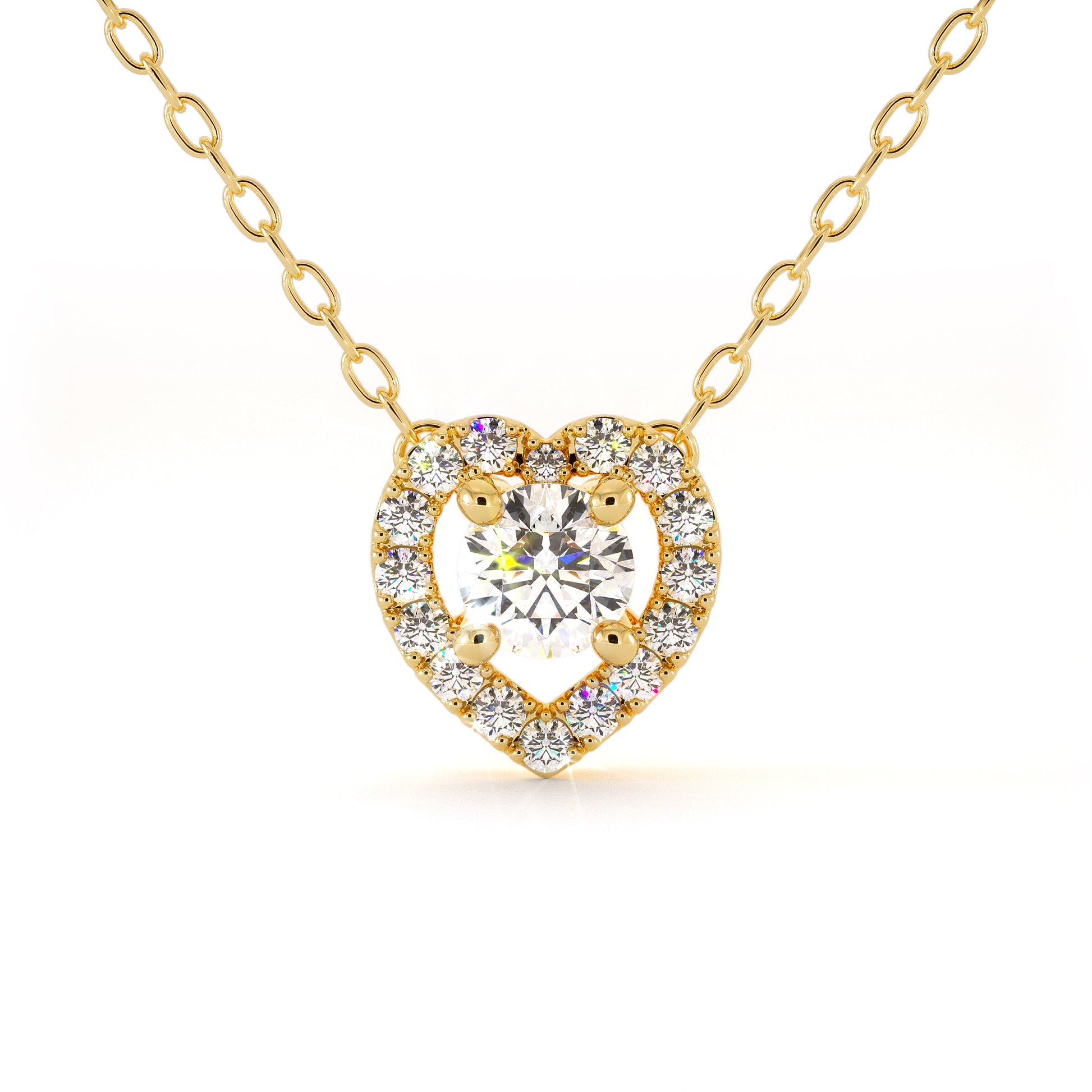Le collier GALICE incarne l'amour et l'élégance avec son diamant central entouré d'un halo en forme de cœur de 0.45 Carats. Chaque pierre du halo contribue à un éclat captivant, accentuant la symbolique profonde de cette pièce. La monture raffinée ajoute une touche de glamour, faisant de ce collier bien plus qu'un simple bijou, mais une déclaration passionnée de l'amour éternel et de la beauté intemporelle.