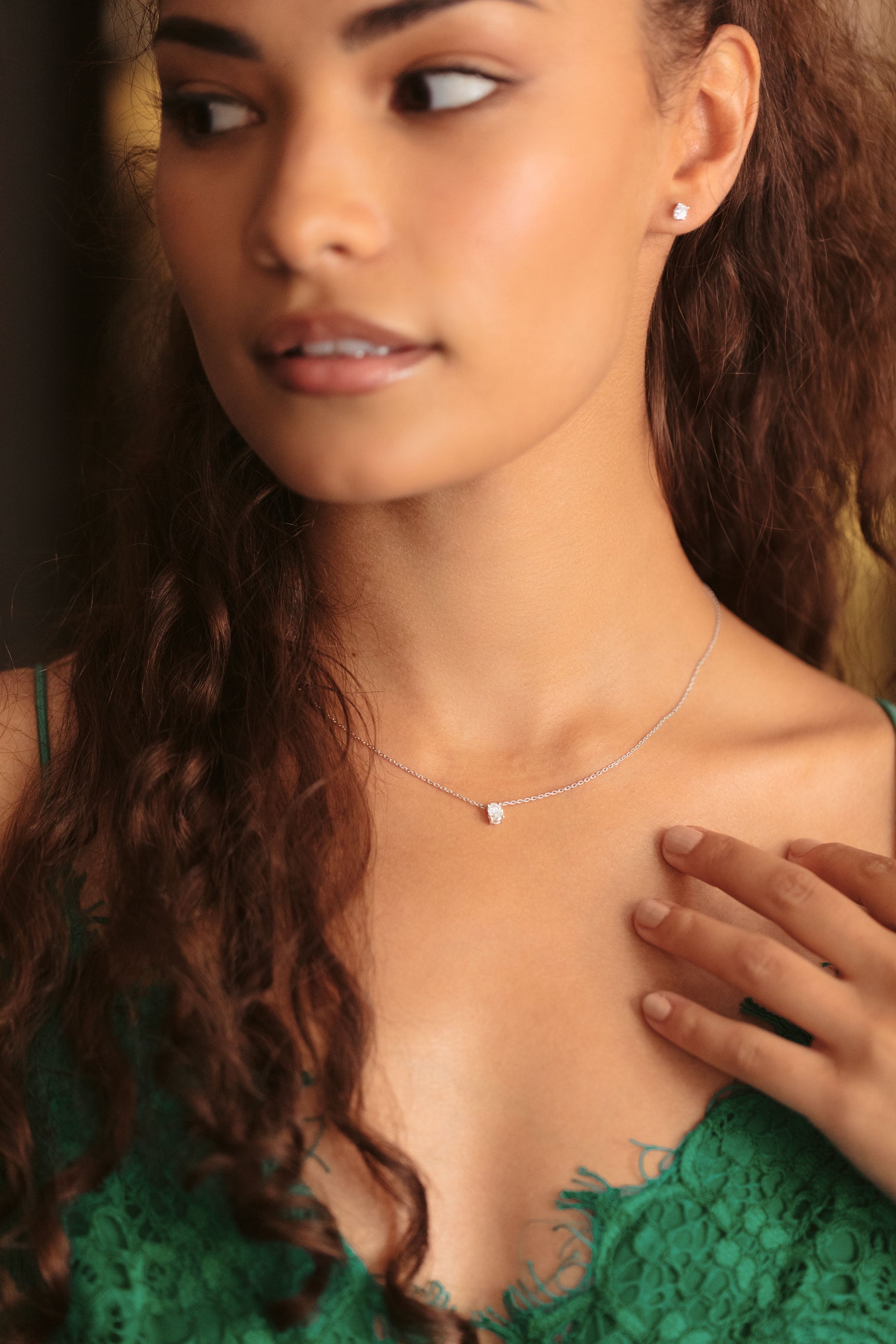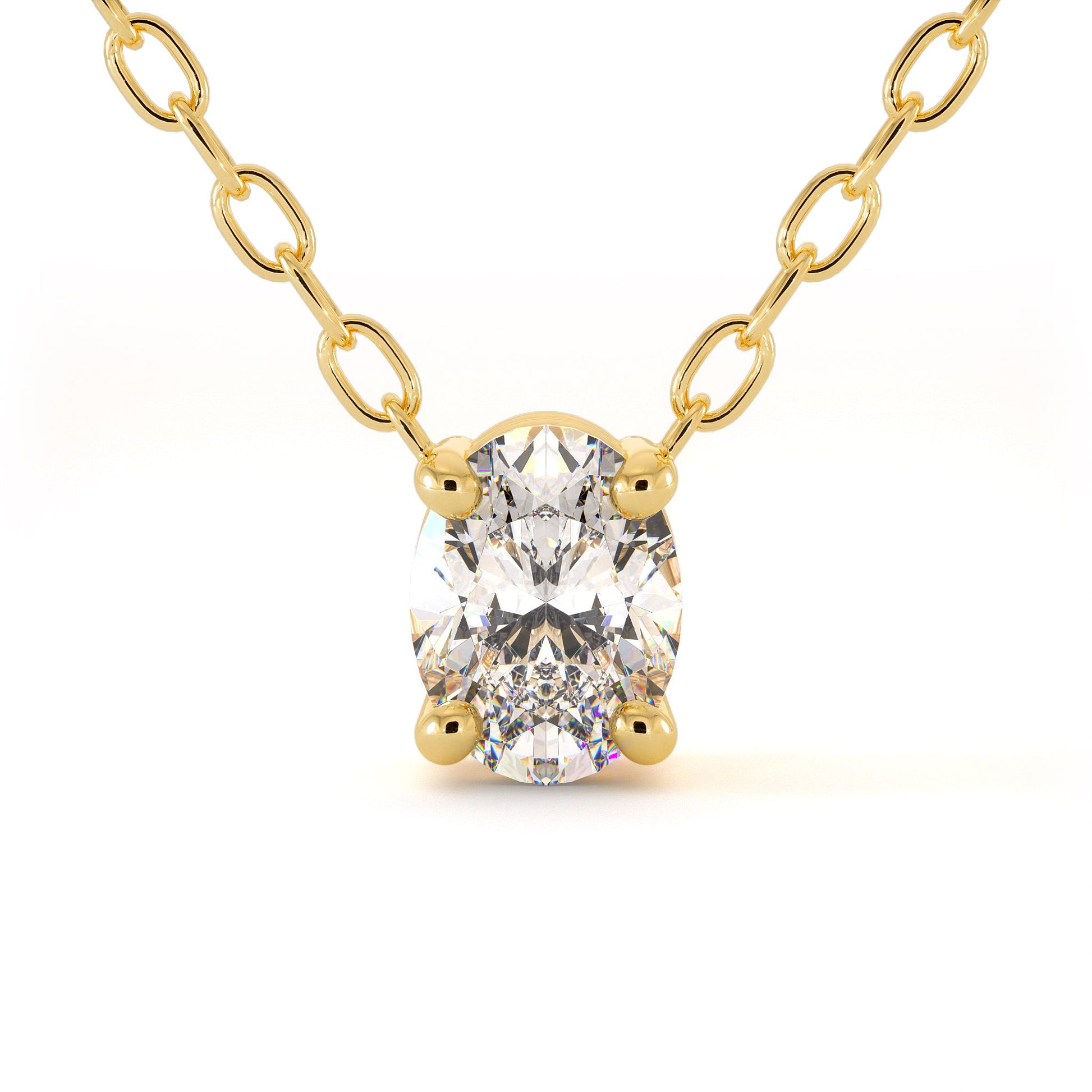 Le collier ROSEWOOD en or 18 carats et son diamant de 0,15 à 0,30 carats est sa pierre centrale taille ovale est maintenue par 4 griffes qui laissent passer la lumière pour faire ressortir son éclat.