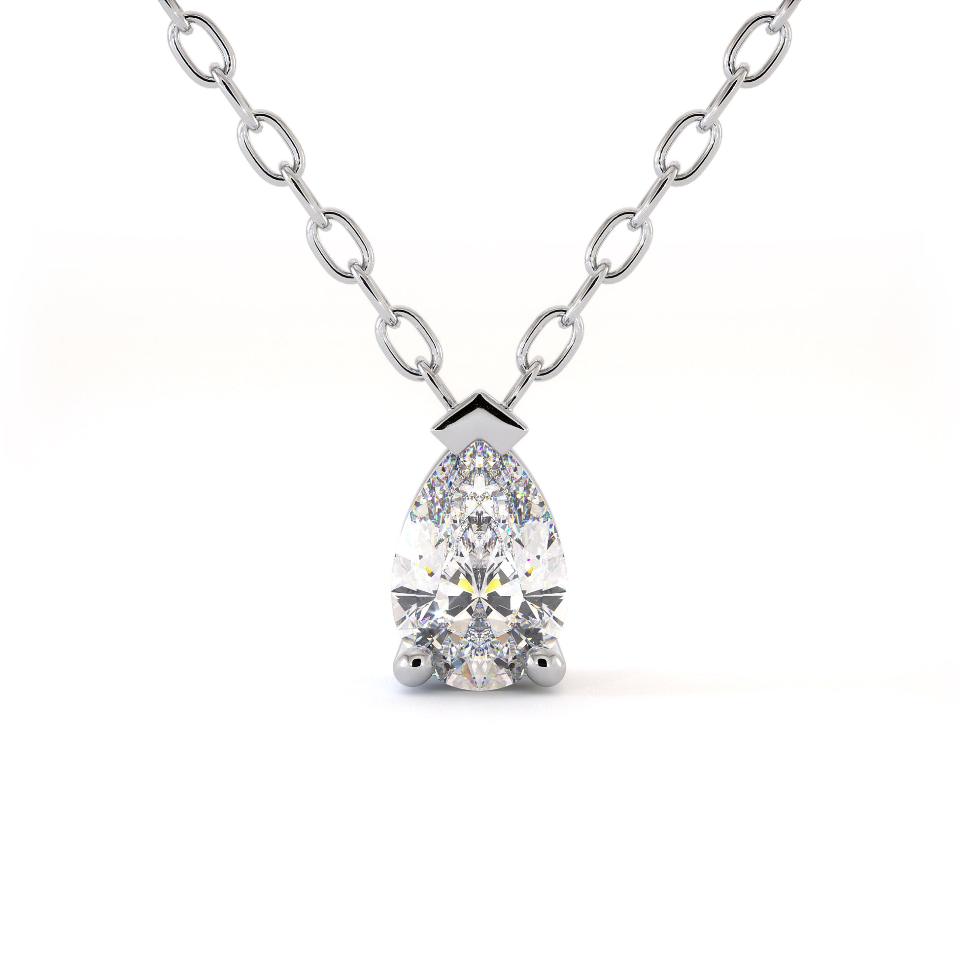 Le collier STAY en or 18 carats et sa pierre centrale en diamant de 0,10 à 0,30 carats, le rend comparable à une goutte de lumière. Cette somptueuse taille poire se glisse dans le creux du cou et scintille.