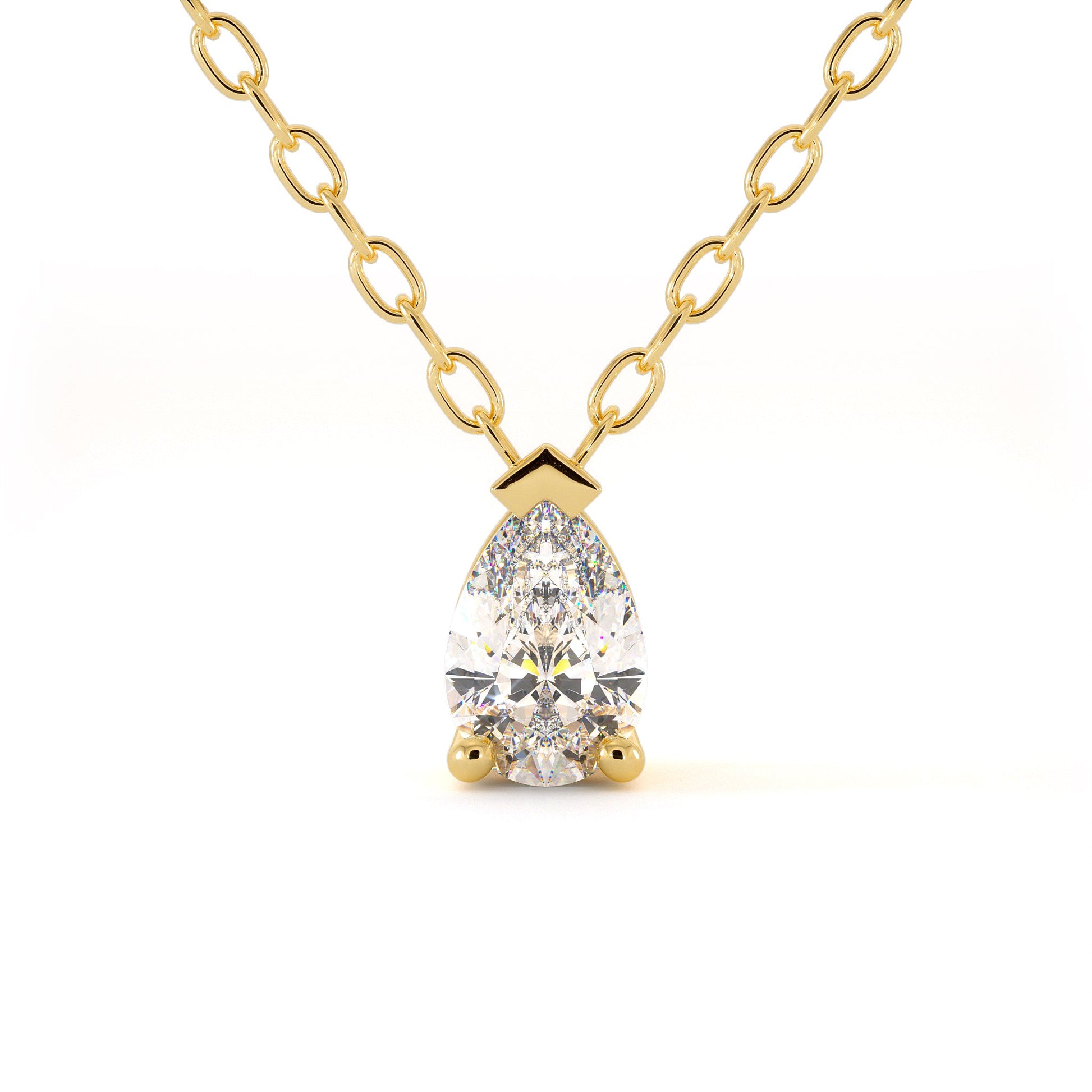 Collier STAY en or 18 carats avec un diamant central taille poire de 0,10 à 0,30 ct, capturant la lumière pour sublimer le cou. Disponible en or jaune, blanc ou rose, un bijou élégant et raffiné.