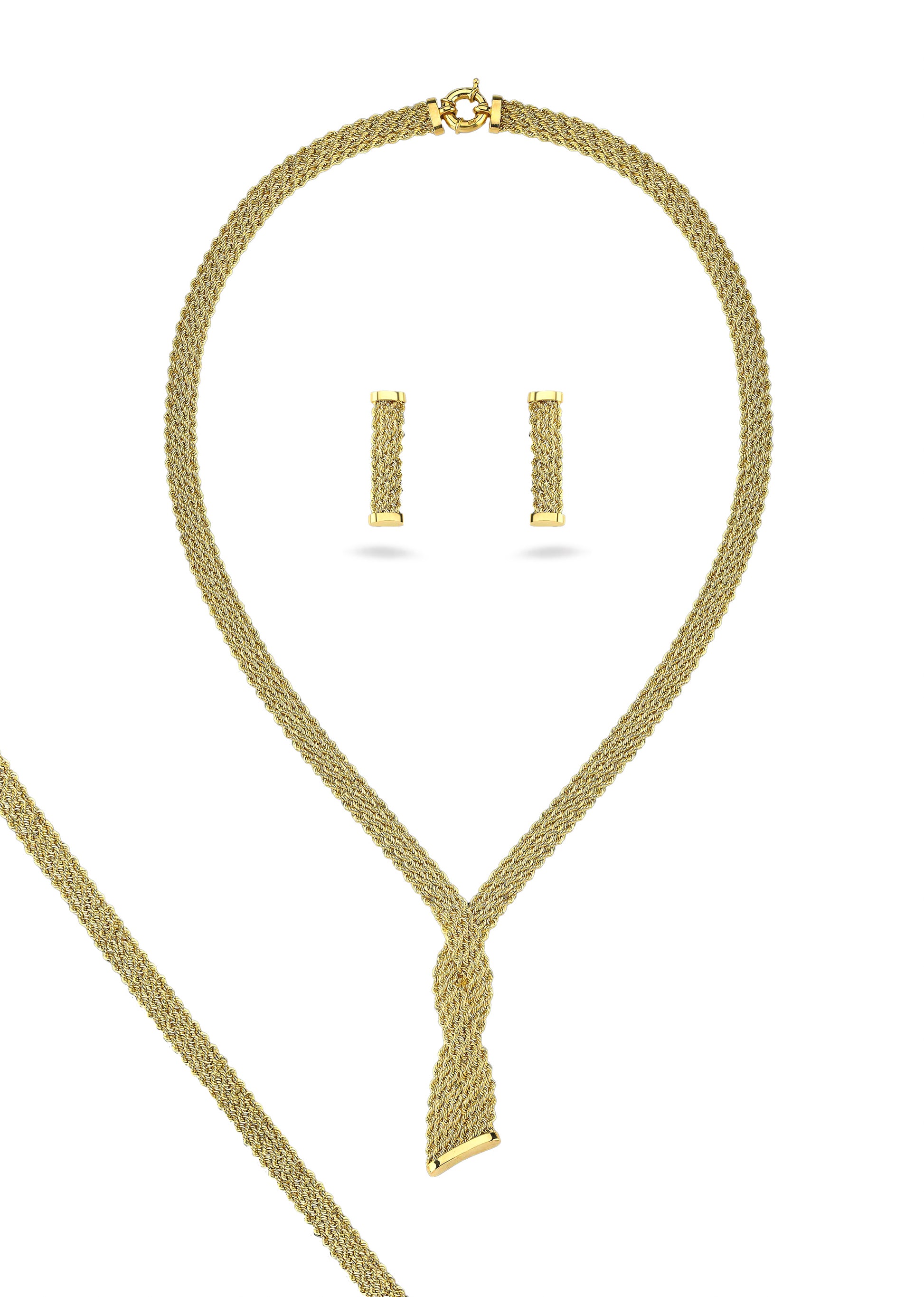 La parure ADELIA en or 18 carats allie finesse et élégance. Ses mailles en mouvement apportent une délicate sensualité au collier, complété par un bracelet et des boucles d’oreilles pour un ensemble lumineux, idéal pour toutes les occasions.