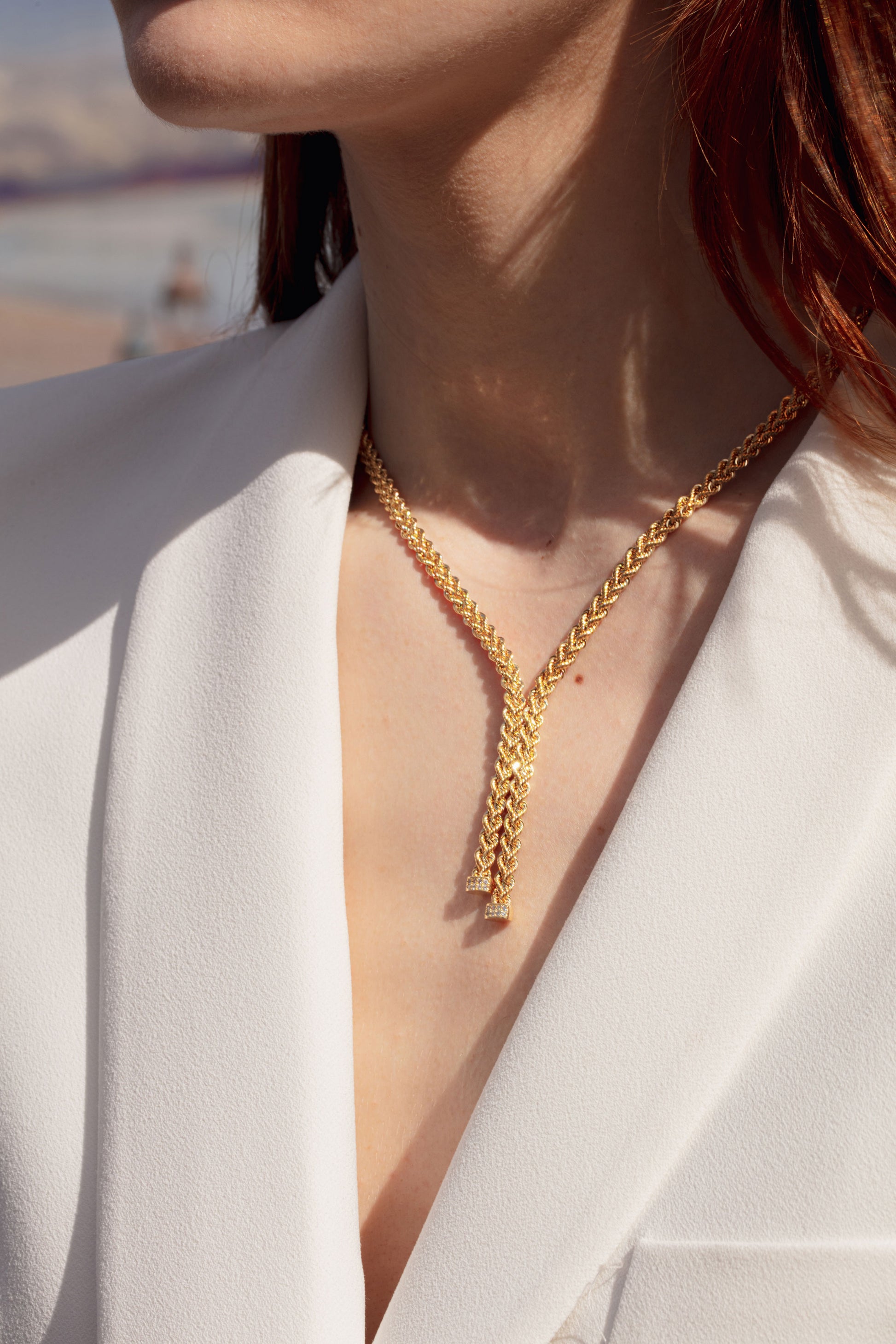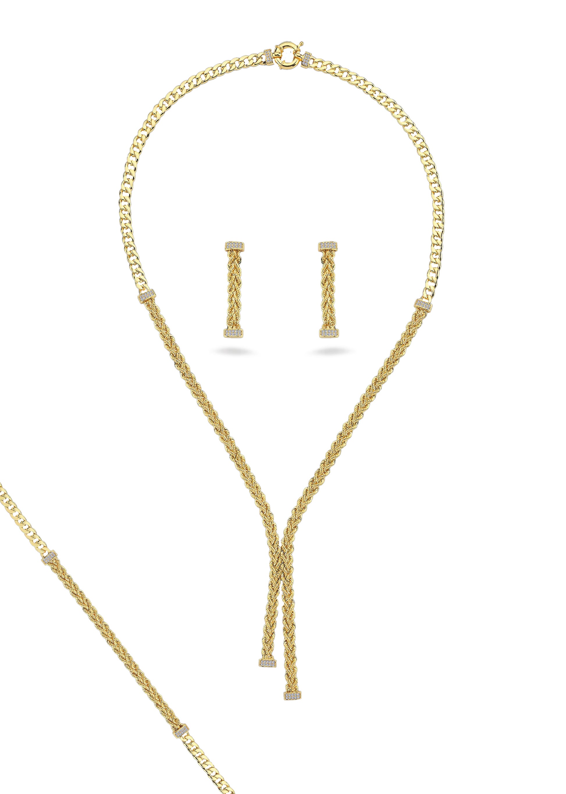 La parure LOVE en or 18 carats allie élégance et modernité. Ses mailles délicatement ornées de bandes brillantes se déclinent en collier, bracelet et boucles d’oreilles aux courbes épurées, pour un ensemble raffiné et harmonieux.