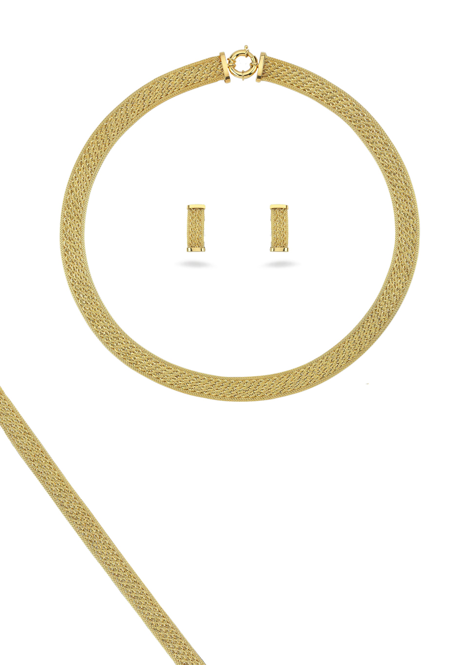 La parure NARA en or 18 carats incarne modernité et audace. Sa maille torsadée revisite le classique avec créativité, et se décline en collier, bracelet et boucles d’oreilles pour un ensemble lumineux et raffiné.