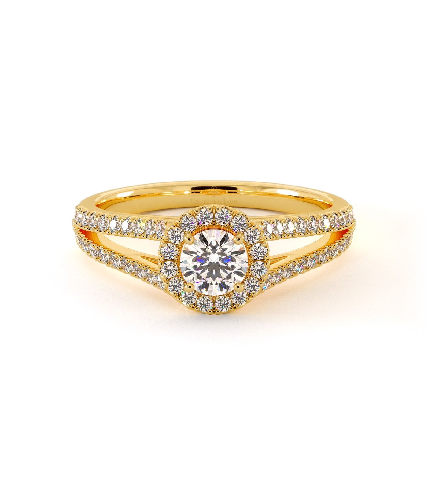 Le solitaire BLUEBERRY en or 18 carats vous offre un sentiment de confort absolu grâce à son diamant central de forme ronde. Un scintillant diamant sublimé et enveloppé par un halo de petits diamants brillants. Le corps de bague est pavé de brillants disposés sur deux rangs le long de l'anneau. La bague de fiançailles BLUEBERRY, gracieuse par son style, convient à la fois aux femmes classiques mais aussi aux femmes fatales et séduisantes.
