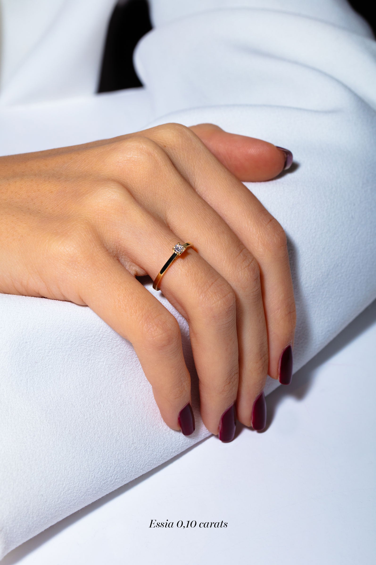 Le solitaire ESSIA en or 18 carats est destiné à toutes les femmes au style intemporel et sobre. Cette magnifique bague de fiançailles mise sur la simplicité et le raffinement des lignes pures de son anneau. Le modèle ESSIA met sur le devant de la scène un sublime diamant qui apportera un scintillement divin à votre doigt. Pour compléter ce solitaire, optez pour l'alliance PALMYRE qui ne fera que révéler l'éclat de votre diamant, ou créer votre bague de mariage sur-mesure qui accompagnera à merveille ce solitaire. Le modèle ESSIA est réalisable avec un diamant de 0.1 à 0.85 carats.