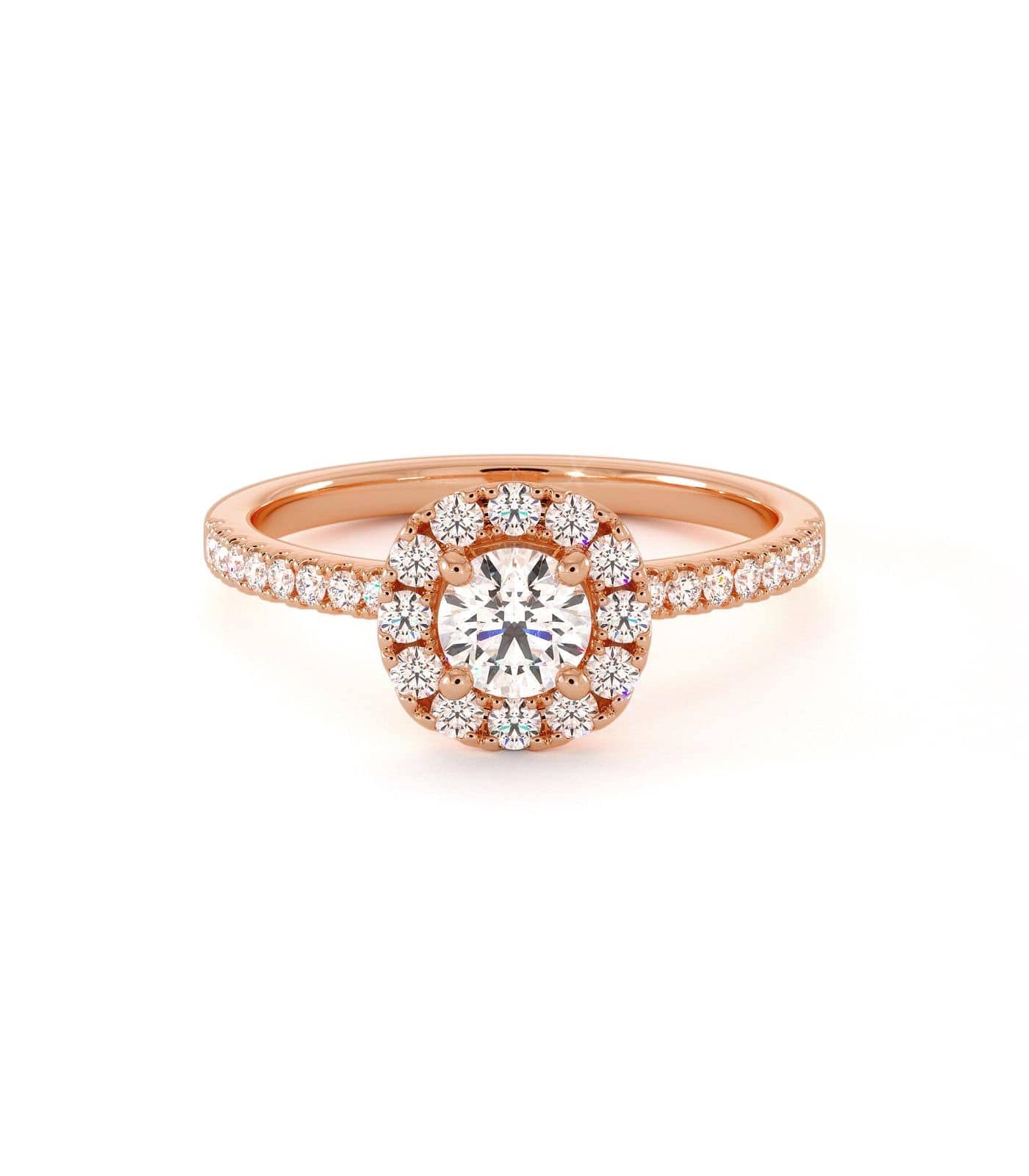Iconique, ravissante et généreuse en éclat, la bague de fiançailles LYRE en or 18 carats est sertie d'un diamant central de taille brillant sublimé par un halo de diamants. Une ligne de merveilleux petits diamants brillants épouse parfaitement le tour de la pierre centrale et le long du corps de bague pour un rayonnement suprême. Il saura divinement sublimer votre style par sa touche éclatante. Bien qu'il suffise à lui-même, le solitaire LYRE se porte à  merveille avec l'intemporelle alliance MAKIAN ou la raffinée DUNE.