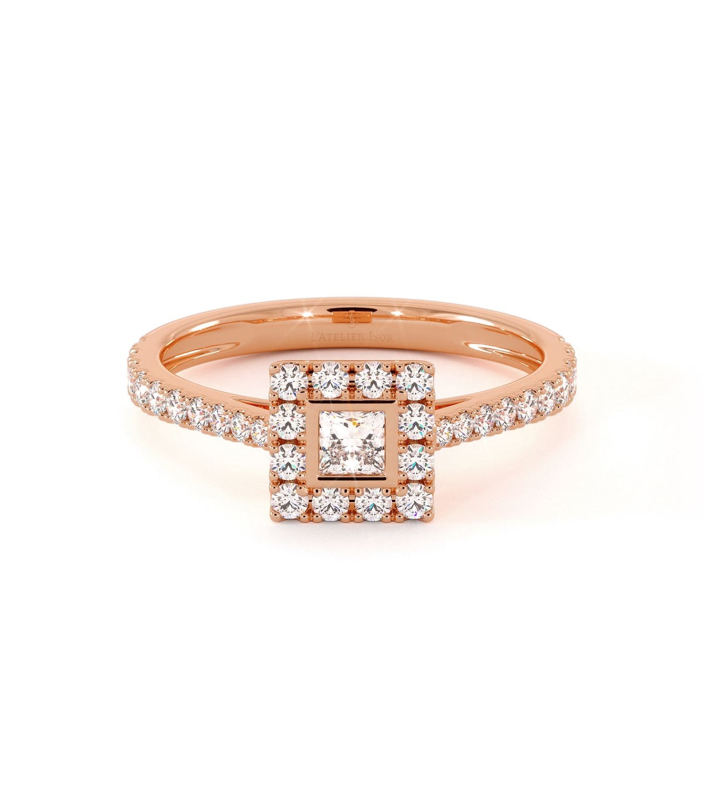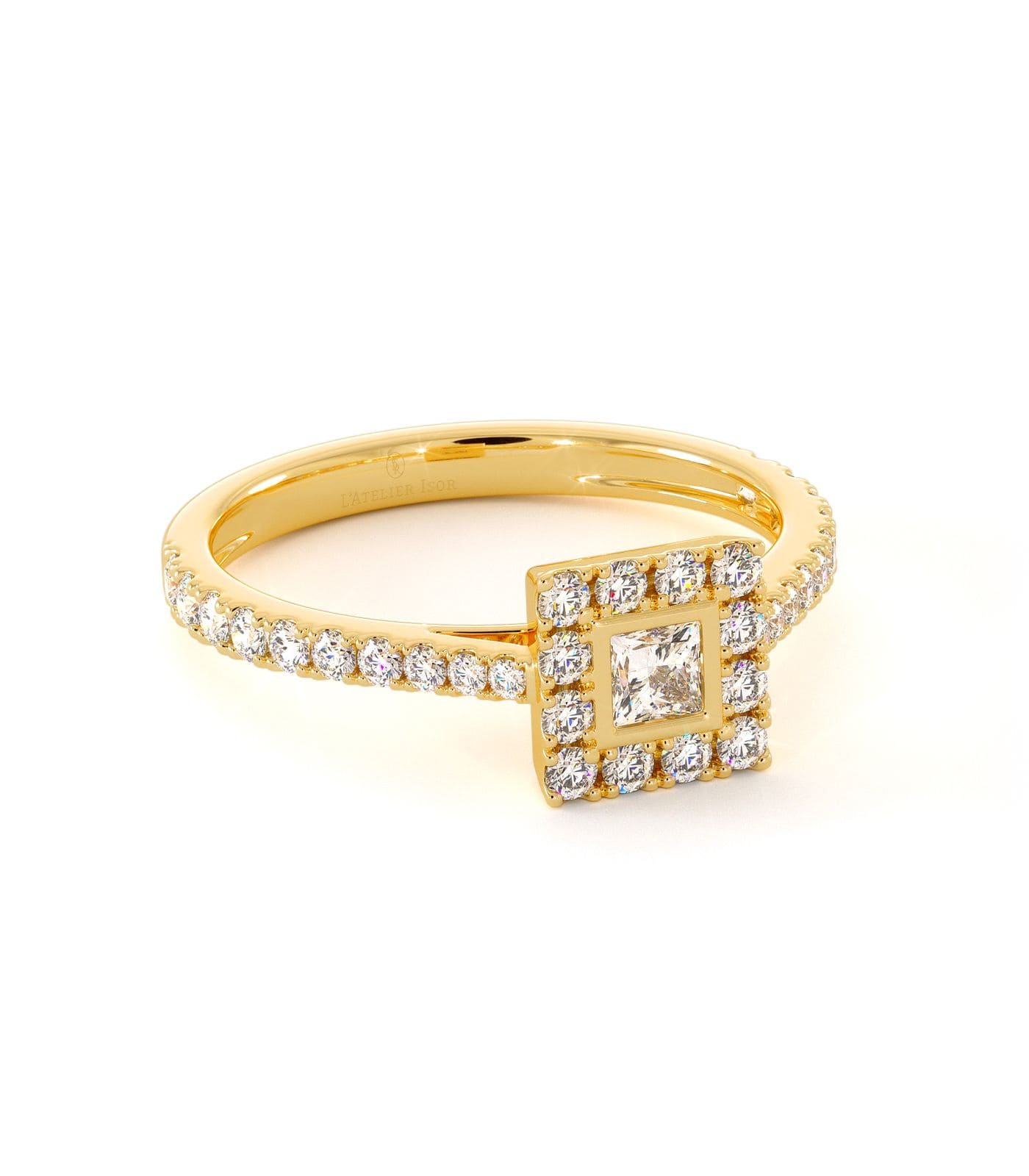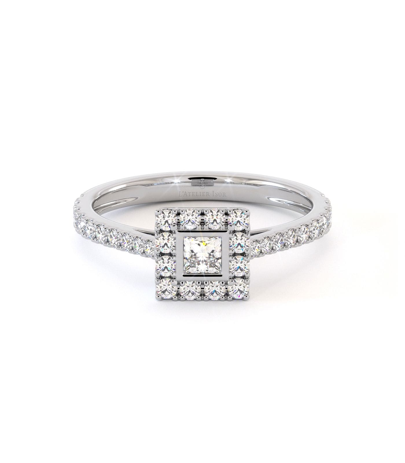 D'un raffinement exceptionnel, le solitaire MOOREA en or 18 carats vous invite à dire « oui !» à l'amour de votre vie. Cette bague de fiançailles scintille par la brillance de son diamant central 0.20 carats taille princesse entouré de magnifiques petites pierres qui mettent encore plus en scène son centre éclatant. Son anneau pavé de petits diamants brillants, accentue l'élégance de ce bijou. La monture MOOREA embellira divinement votre doigt pour l'éternité. Par son effet géométrique, le solitaire MOOREA ravira toutes les femmes pointilleuses. Ce modèle peut aussi bien être porté seul qu'associé à l'alliance MAKIAN, une alliance au succès ravageant.