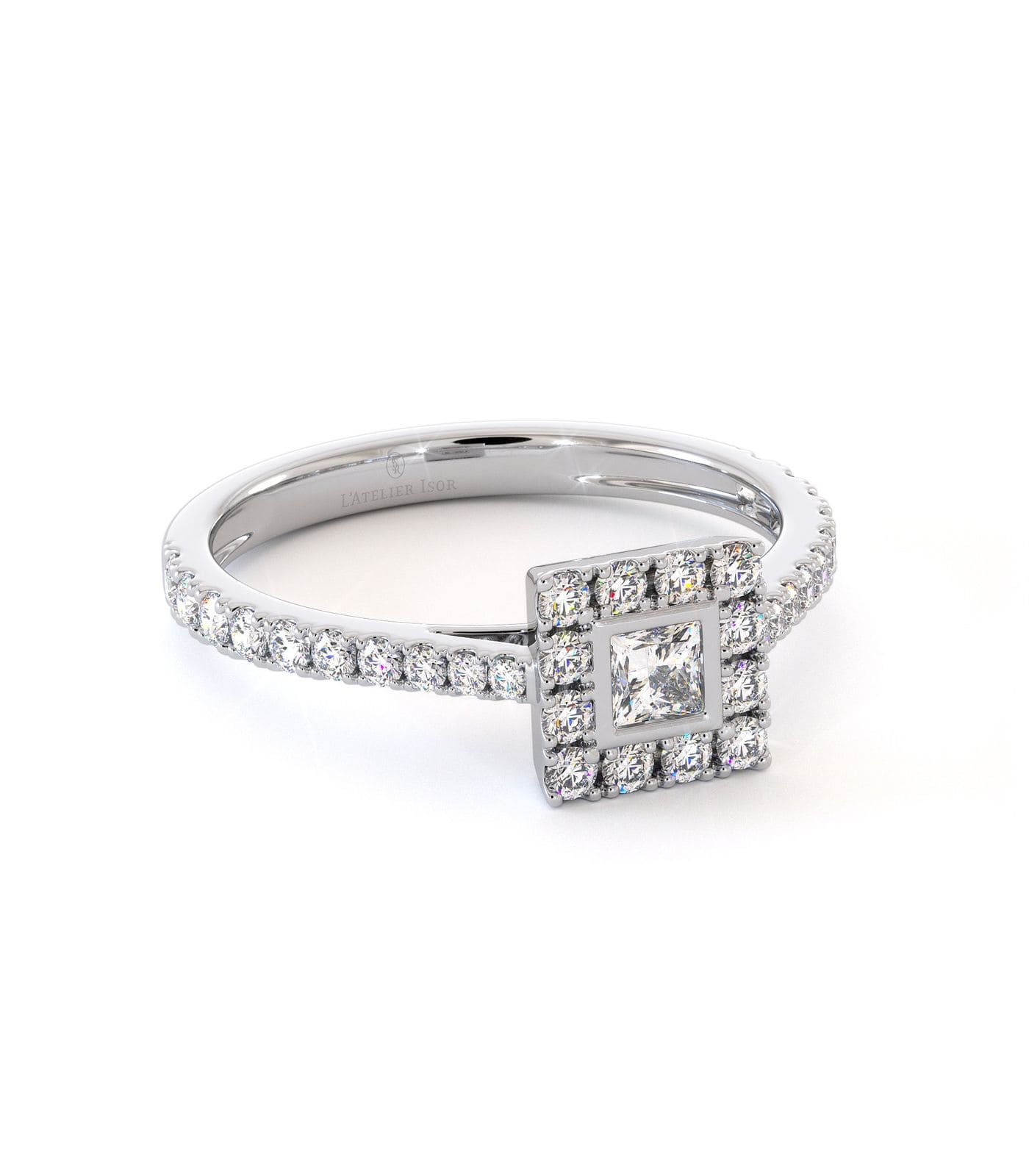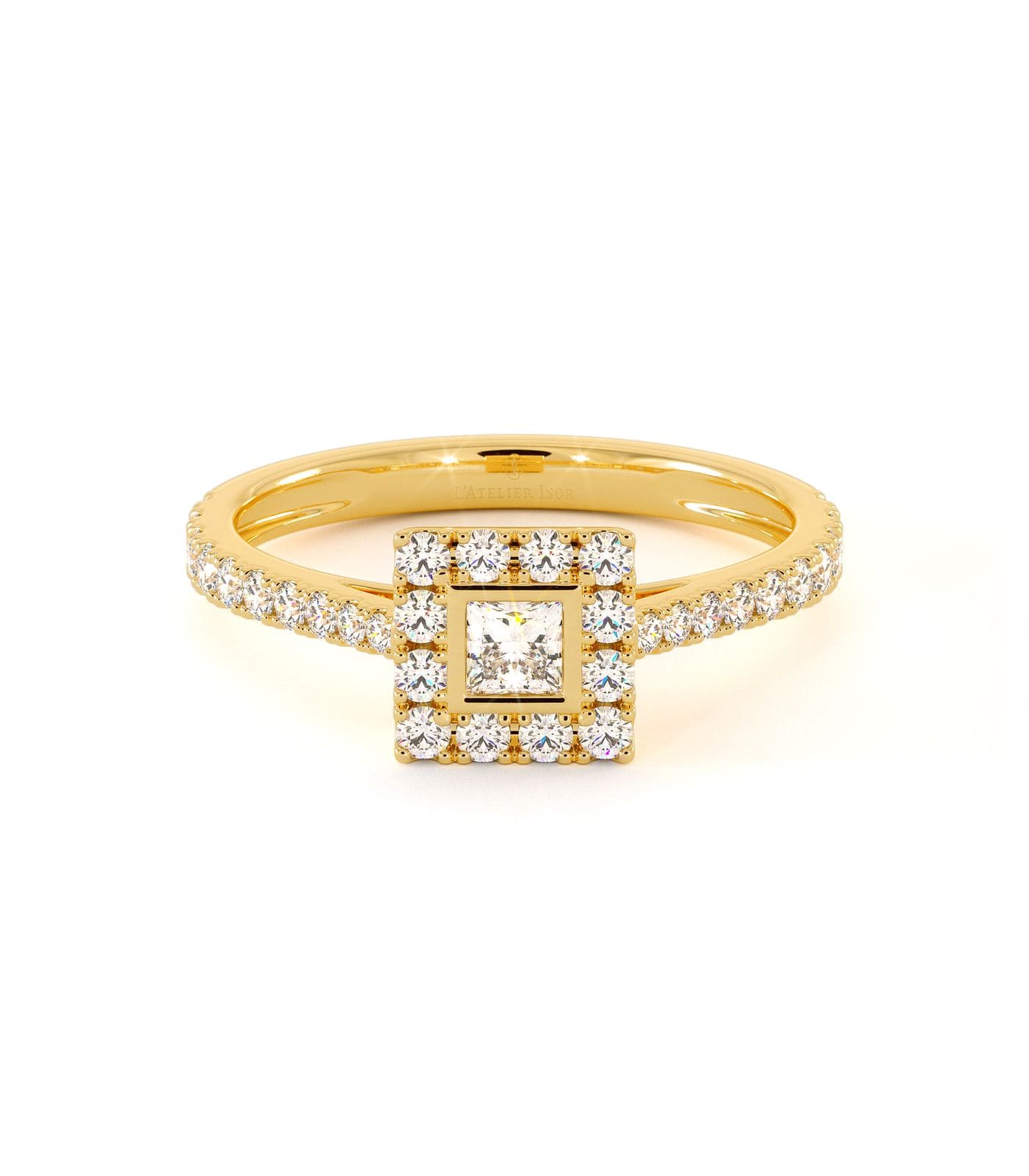 D'un raffinement exceptionnel, le solitaire MOOREA en or 18 carats vous invite à dire « oui !» à l'amour de votre vie. Cette bague de fiançailles scintille par la brillance de son diamant central 0.20 carats taille princesse entouré de magnifiques petites pierres qui mettent encore plus en scène son centre éclatant. Son anneau pavé de petits diamants brillants, accentue l'élégance de ce bijou. La monture MOOREA embellira divinement votre doigt pour l'éternité. Par son effet géométrique, le solitaire MOOREA ravira toutes les femmes pointilleuses. Ce modèle peut aussi bien être porté seul qu'associé à l'alliance MAKIAN, une alliance au succès ravageant.