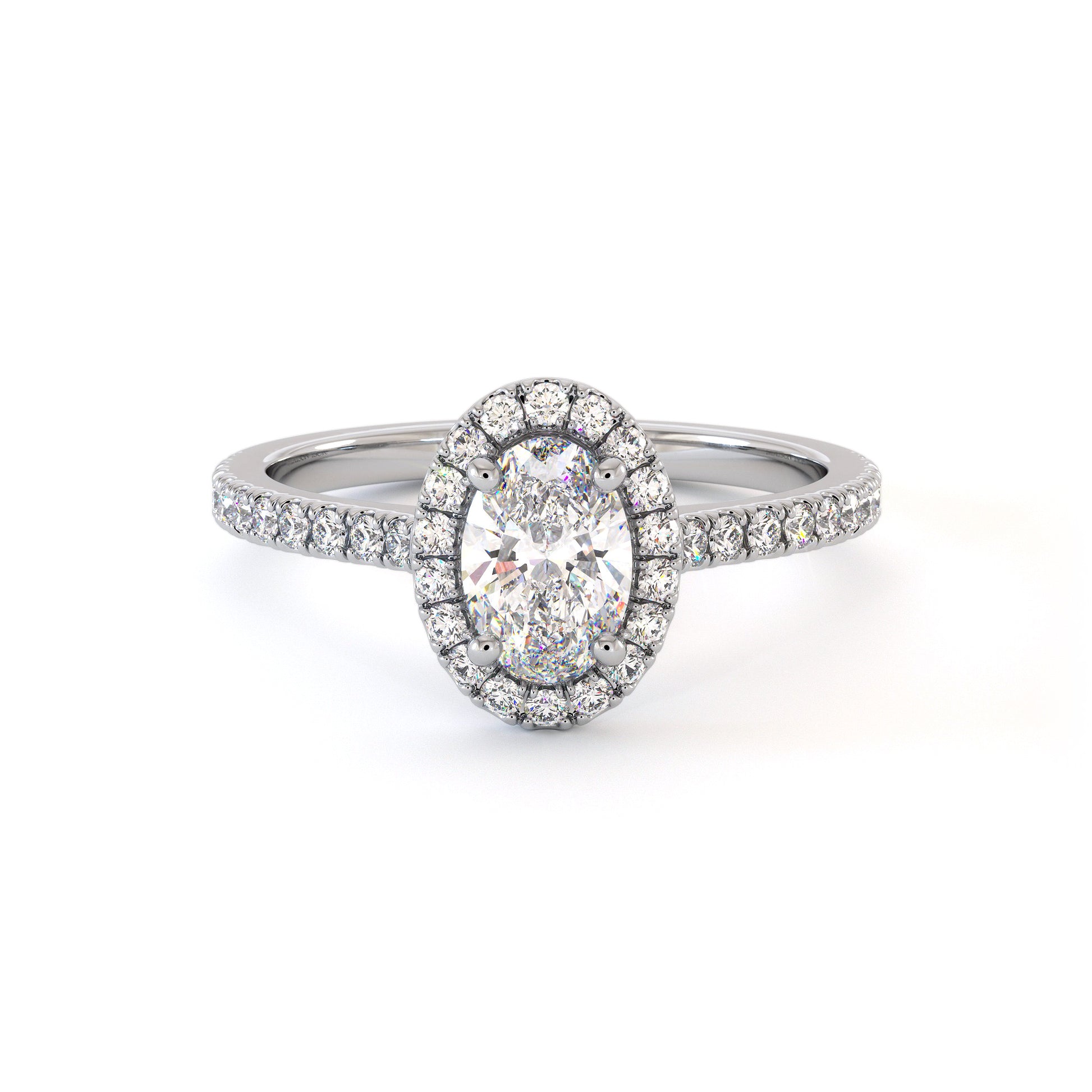 Découvrez notre somptueux solitaire en diamant NOA, une pièce maîtresse qui allie élégance et sophistication. Ce bijou exceptionnel met en avant un diamant ovale de qualité supérieure, dont la taille raffinée maximise la brillance et le scintillement. Entouré d'un halo délicat de petits diamants, ce design crée un effet de profondeur et accentue la beauté du diamant central, lui conférant une aura de luxe inégalée.