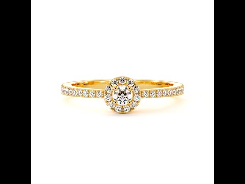 Intensément gracieux, le solitaire OPTIMA en or 18 carats parfait son sertissage grâce à son diamant central 0.10 carats de taille brillant minutieusement choisi par nos experts. Son halo entourant le diamant central révèle d'autant plus l'intensité de la pierre. Son pavage habillant son corps de bague accentue la valeur de la bague. Inspirée d'un amour éternel, la bague de fiançailles OPTIMA est la bague parfaite pour les femmes romantiques. Un style à la fois délicat et singulier, ce modèle illuminera votre main indéfiniment. Le modèle OPTIMA s'associe parfaitement à l'alliance IROKO, une bague de mariage aussi brillante qu'élégante.