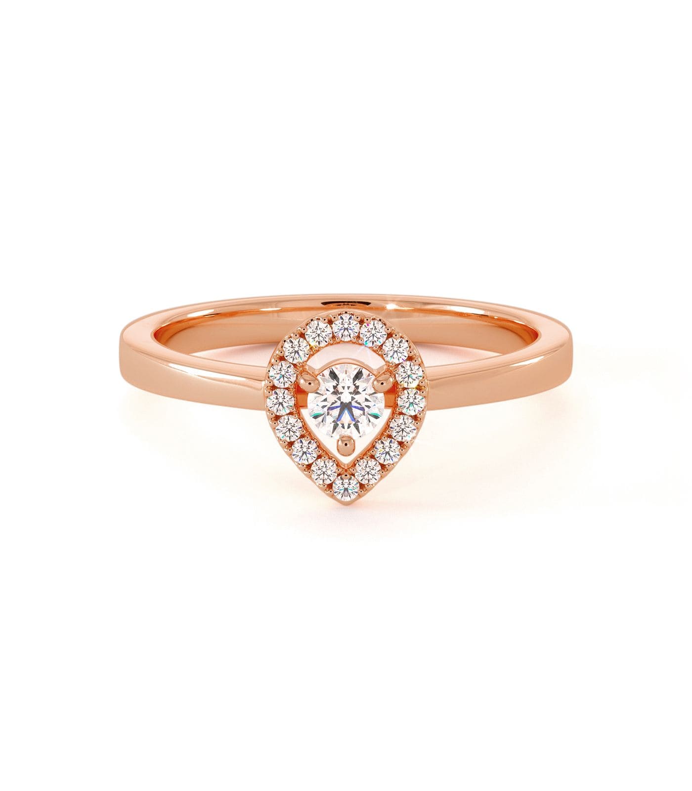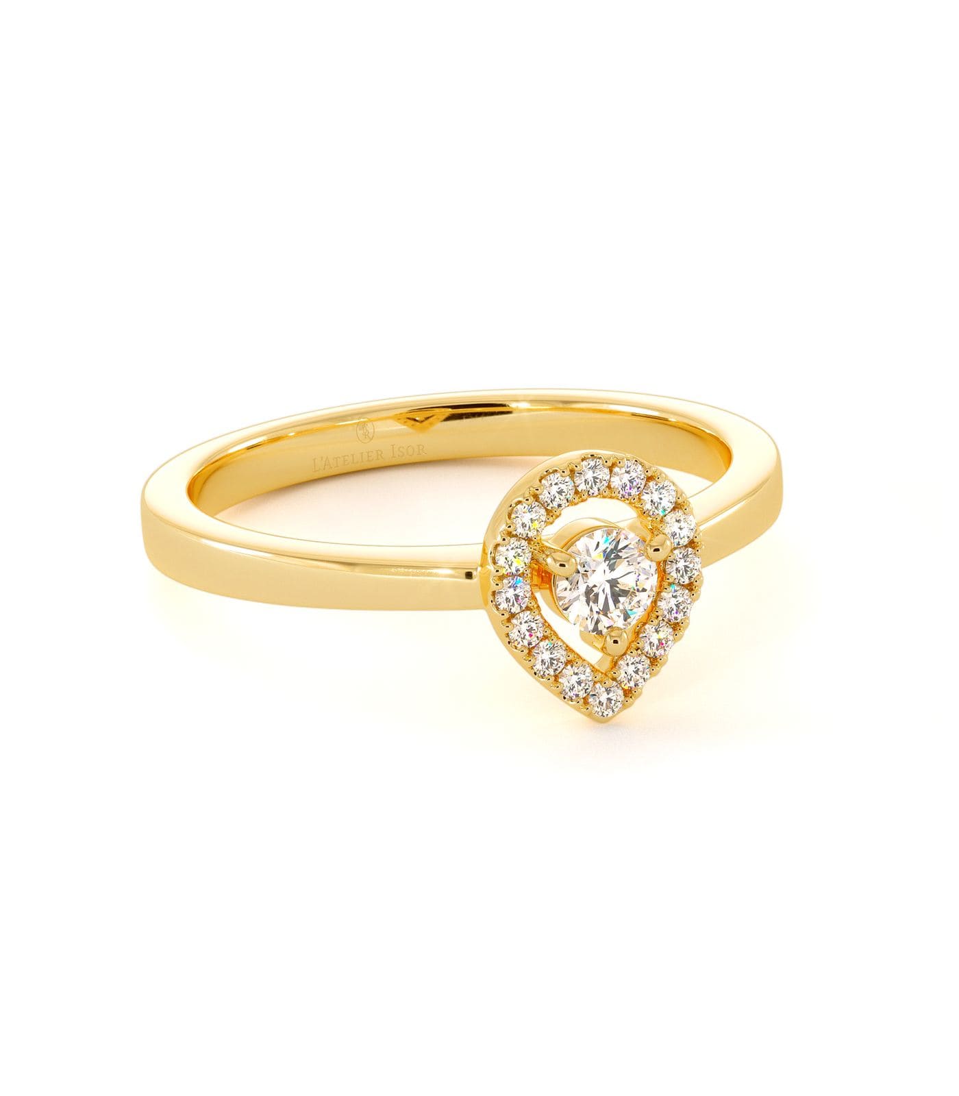 Le solitaire PANAREA et sa monture composée d'or 18 carats, met en scène un diamant central 0,12 carats serti trois griffes et accompagné d'un halo en forme de poire en diamants. La bague de fiançailles PANAREA se caractérise par sa finesse et sa délicatesse. Le modèle PANAREA se marie gracieusement avec l'alliance PALMYRE, une alliance fine et élégante. Vous pouvez également concrétiser la bague de mariage de vos rêves en optant pour notre service de création sur-mesure.