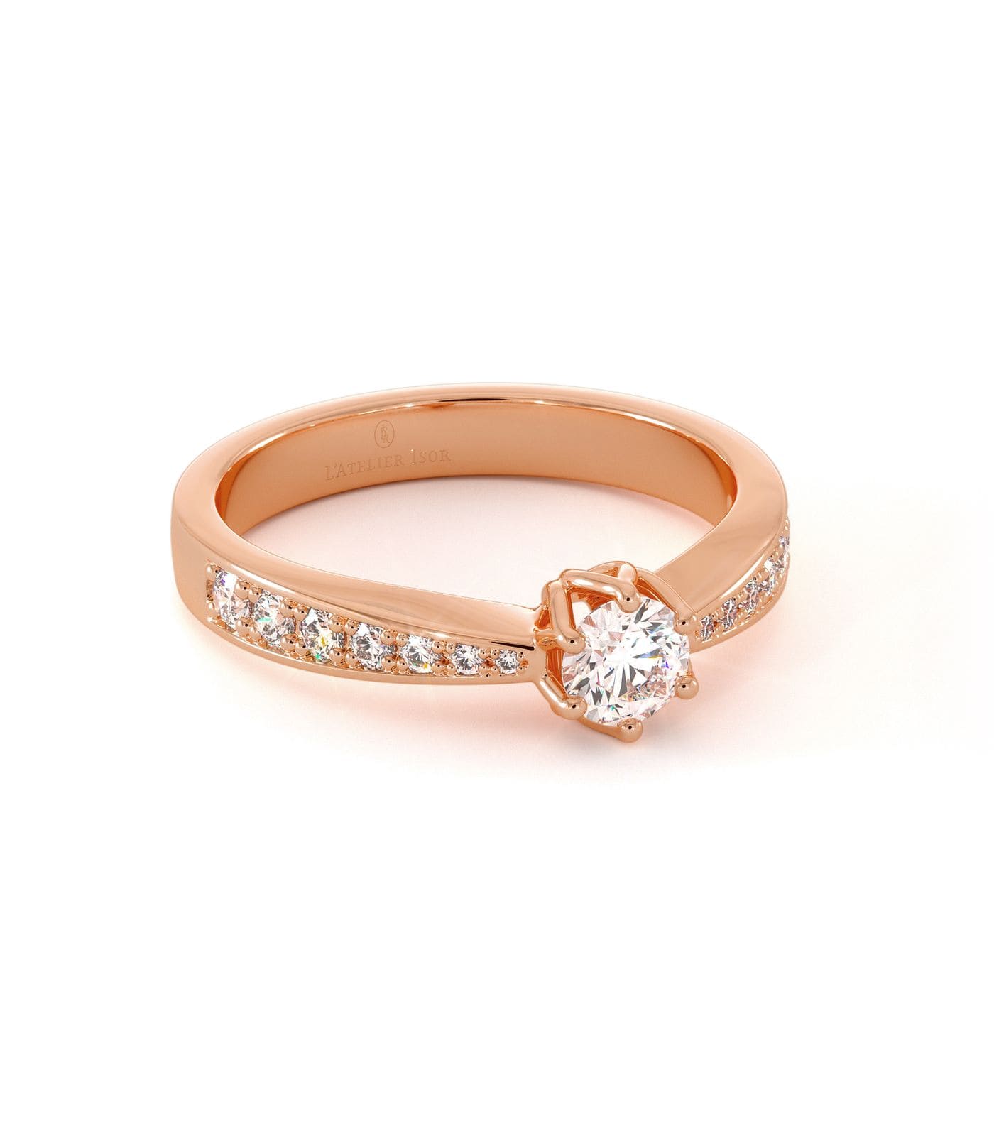 Le design singulier du solitaire PISSARO souligne une originalité distinguée. En or 18 carats, la bague de fiançailles est sertie d'un diamant central 0.25 carats de taille brillant. Son anneau vient s'affiner vers le milieu pour révéler ses six griffes enveloppant la pierre pour un résultat mêlant allure et éclat. Le modèle PISSARO inspiré par la pureté et la sincérité des sentiments captivera toutes les femmes romantiques et raffinées. Pour un duo parfait alliance et solitaire, laissez-vous tenter par une alliance sur-mesure qui saura épouser divinement le corps de cette bague.
