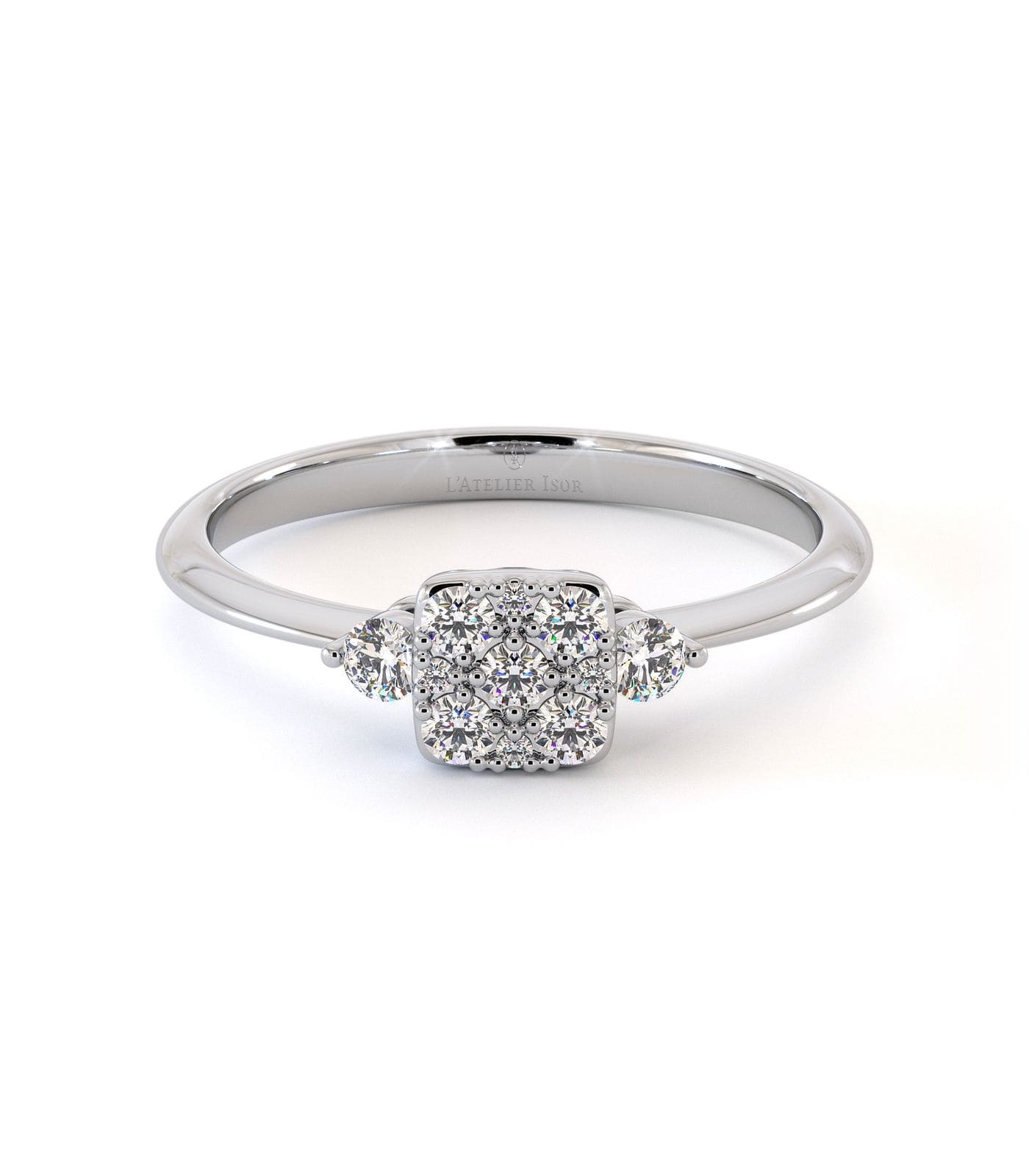 Solitaire Salsa en or 750/1000, composé de diamants (0,25 ct) formant l’illusion d’une pierre centrale taille coussin, sublimée par un éclat intense.