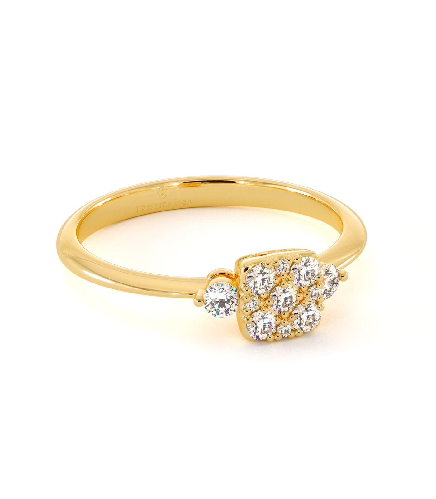 Solitaire Salsa en or 750/1000, composé de diamants (0,25 ct) formant l’illusion d’une pierre centrale taille coussin, sublimée par un éclat intense.