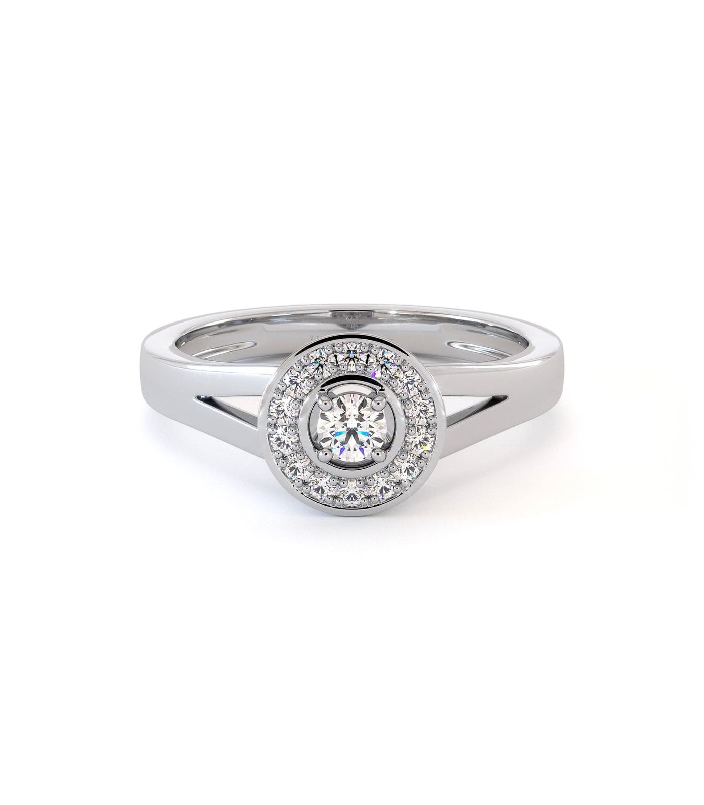 La bague de fiançailles TOKARA se distingue par sa sublime monture ajourée et son radieux diamant central 0,10 carats taille brillant. Une magnifique pierre précieuse encerclée d'un halo de petits diamants brillants venant accentuer la beauté et la pureté du bijou. Son anneau aux surfaces lisses et brillantes, se sépare pour se retrouver de nouveau au centre lumineux de la bague. Original, le solitaire TOKARA vous accompagnera à vie pour capturer l'éternité de votre histoire d'amour.