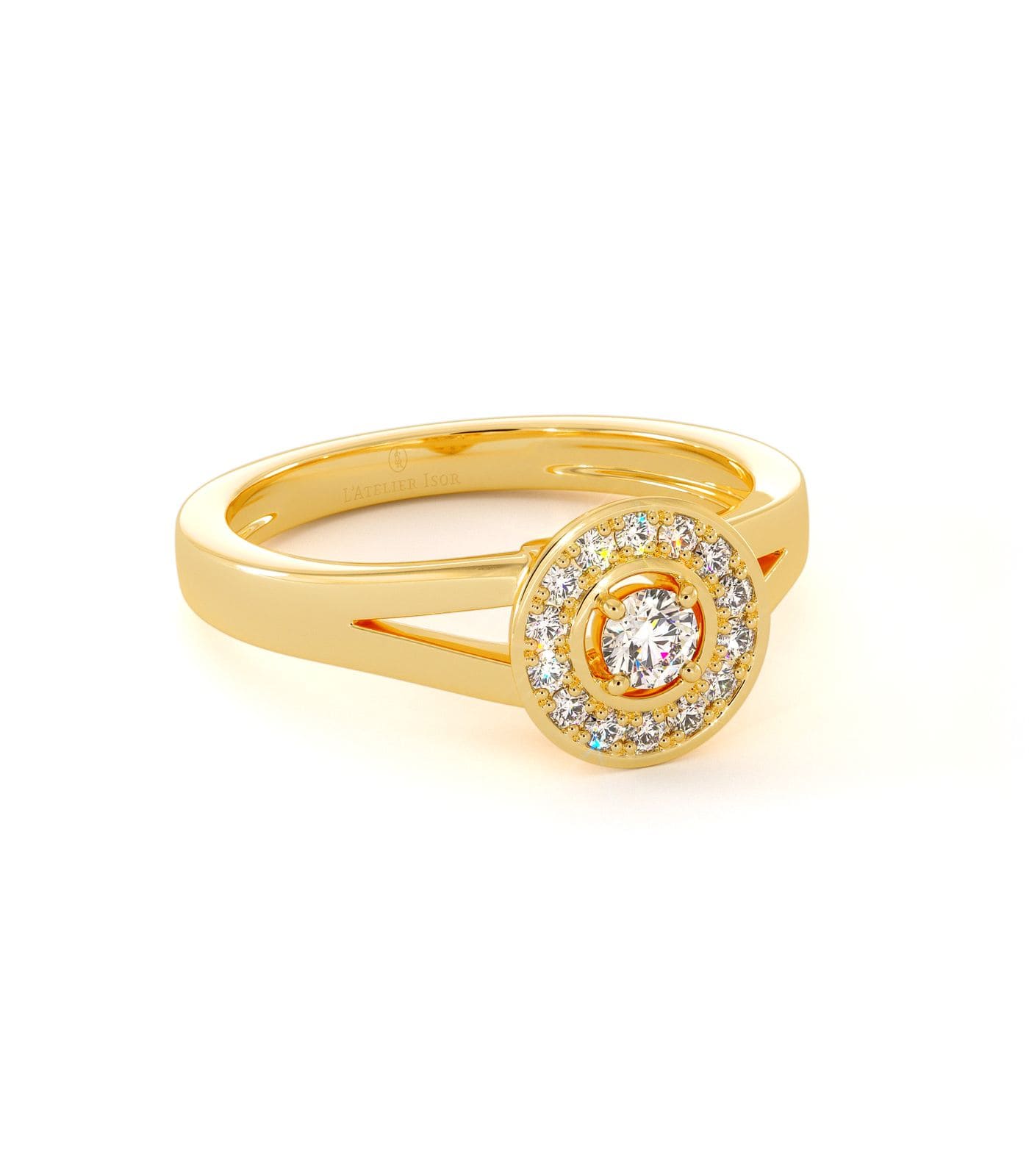 La bague de fiançailles TOKARA se distingue par sa sublime monture ajourée et son radieux diamant central 0,10 carats taille brillant. Une magnifique pierre précieuse encerclée d'un halo de petits diamants brillants venant accentuer la beauté et la pureté du bijou. Son anneau aux surfaces lisses et brillantes, se sépare pour se retrouver de nouveau au centre lumineux de la bague. Original, le solitaire TOKARA vous accompagnera à vie pour capturer l'éternité de votre histoire d'amour.