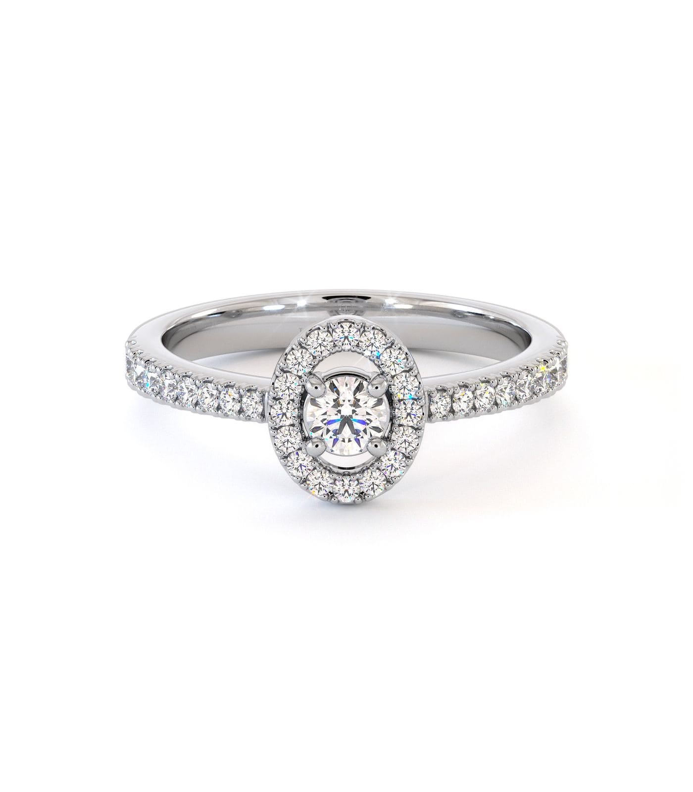 Le solitaire TUREIA en or 18 carats, renferme dans son halo ovale incrusté de brillants diamants, une magnifique pierre centrale 0,15 carats de forme ronde et d'une brillance intense. Le design aérien et sophistiqué de la bague de fiançailles TUREIA est enrichie par un serti de diamants minutieusement disposés le long de son corps de bague. Brillance et éclat viendront s'ajouter à votre main.