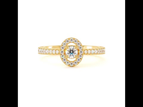 Un solitaire au caractère incandescent, TUREIA en or 18 carats, renferme dans son halo ovale incrusté de petits diamants brillants, une magnifique pierre centrale de 0.15 carats de forme ronde d'une brillance enivrante. Le solitaire TUREIA au design aérien est serti de petits diamants minutieusement disposées le long de son corps de bague qui vient amplifier l'éclat du bijou autour de votre doigt. Un design qui réalisera certainement les rêves de toute femme romantique. La bague de fiançailles TUREIA épouse avec élégance l'alliance DUNE d'une simplicité audacieuse, une bague de mariage qui vous comblera certainement.