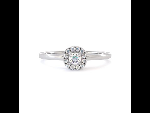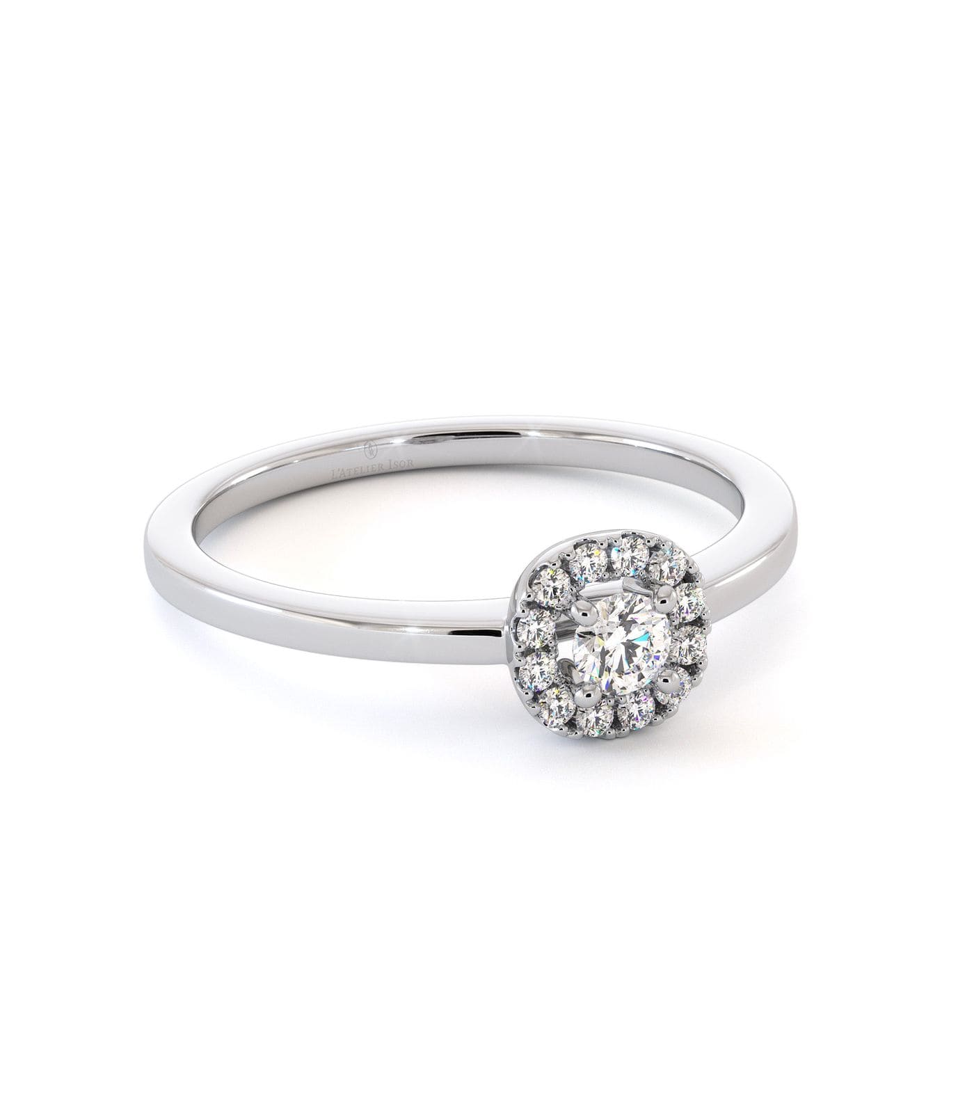 Alliant grâce et élégance, la bague de fiançailles UTOPIA en or 18 carats est sertie d'un diamant central 0,10 carats taille brillant. Son halo de diamants accentue non seulement la pureté de l'or mais aussi l'éclat du diamant central. Son design intemporel et glamour saura sublimer votre style par sa touche éclatante.
