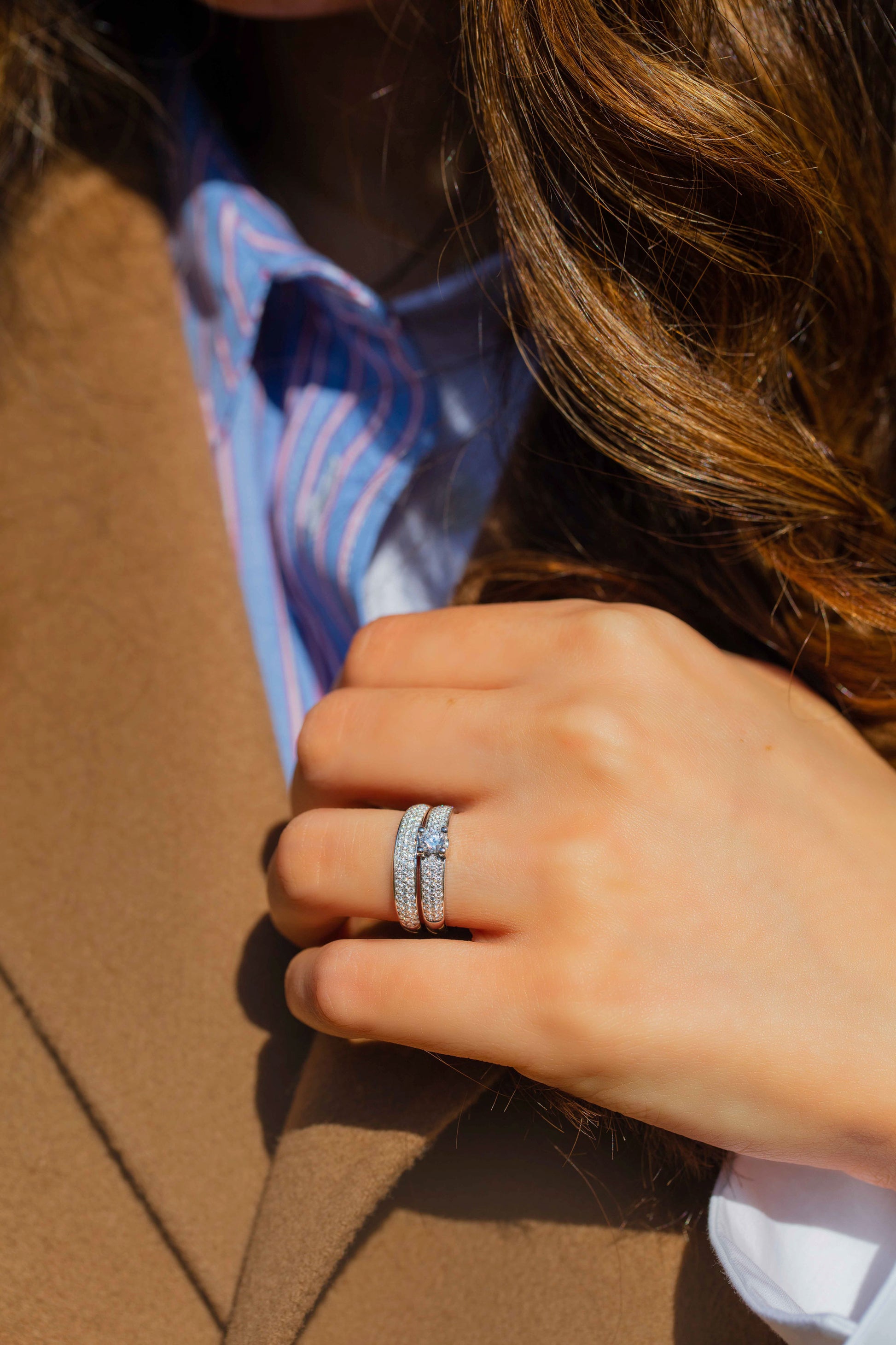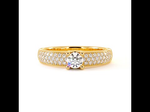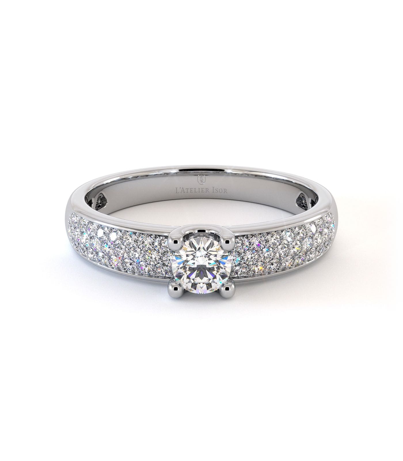 Le solitaire VELASQUEZ en or 18 carats est une création parsemée de diamants 0,35 carats qui révèle la brillance de son diamant central 0,25 carats taille brillant. Le magnifique solitaire VELASQUEZ est le résultat d'un travail minutieux de pavage en diamants éclatant. Bien qu'elle se suffise à elle-même, cette bague peut être mariée à une alliance ou une création sur-mesure.